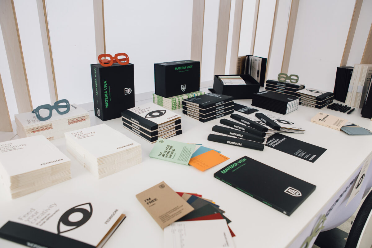 E, para mudar a perspetiva e ver o mundo de forma diferente, foram distribuídos uns óculos de estrutura automontável feitos com papéis Fedrigoni.