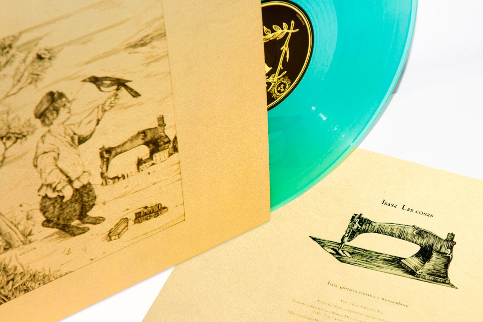 Disco de Isasa ‘Las cosas’, do estúdio Monostereo, com Sirio Pearl Aurum, serigrafado à mão.