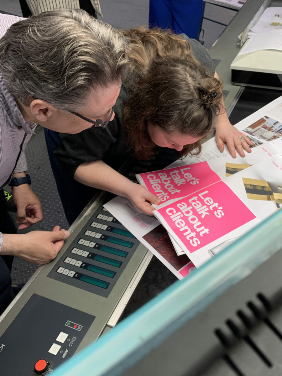 No artigo “Hablemos de clientes” [Falemos de clientes], três designers gráficos de renome reúnem-se a partir da América do Sul, da Europa e dos Estados Unidos numa mesa redonda virtual, para uma palestra sobre as relações entre clientes e designers. Os protagonistas são Laurent Hainaut, da Force Majeure em Brooklyn (EUA); Adele Bacci, da Thomas Manss & Company em Florença, e Ismael Prieto, do estúdio DEO em Santiago do Chile.