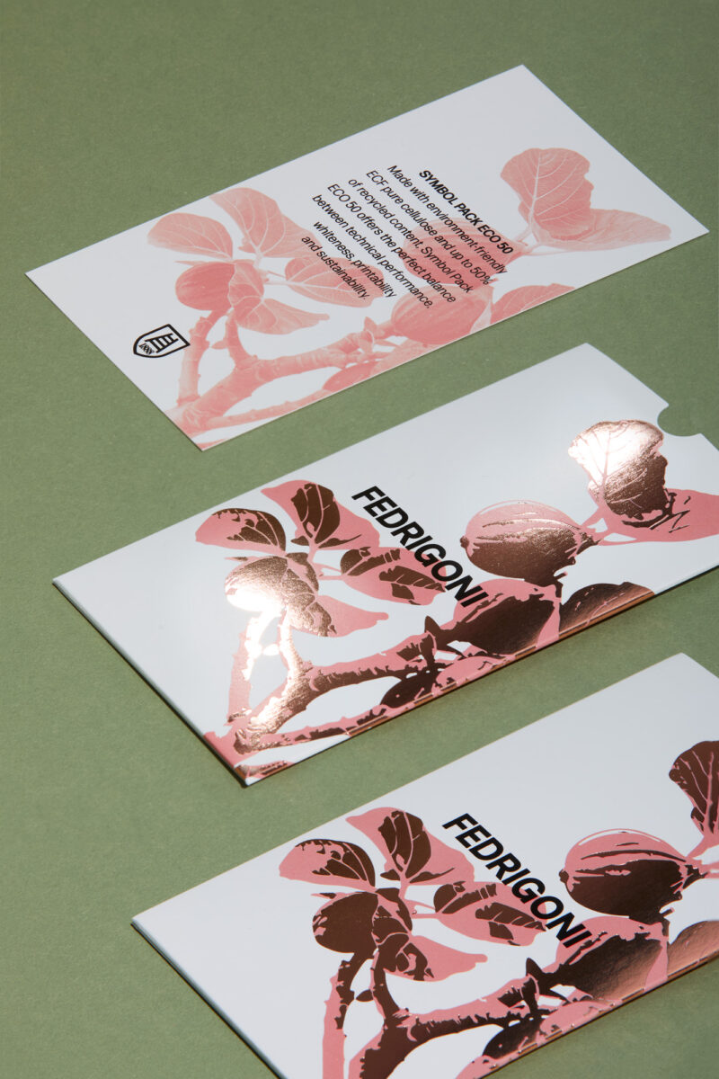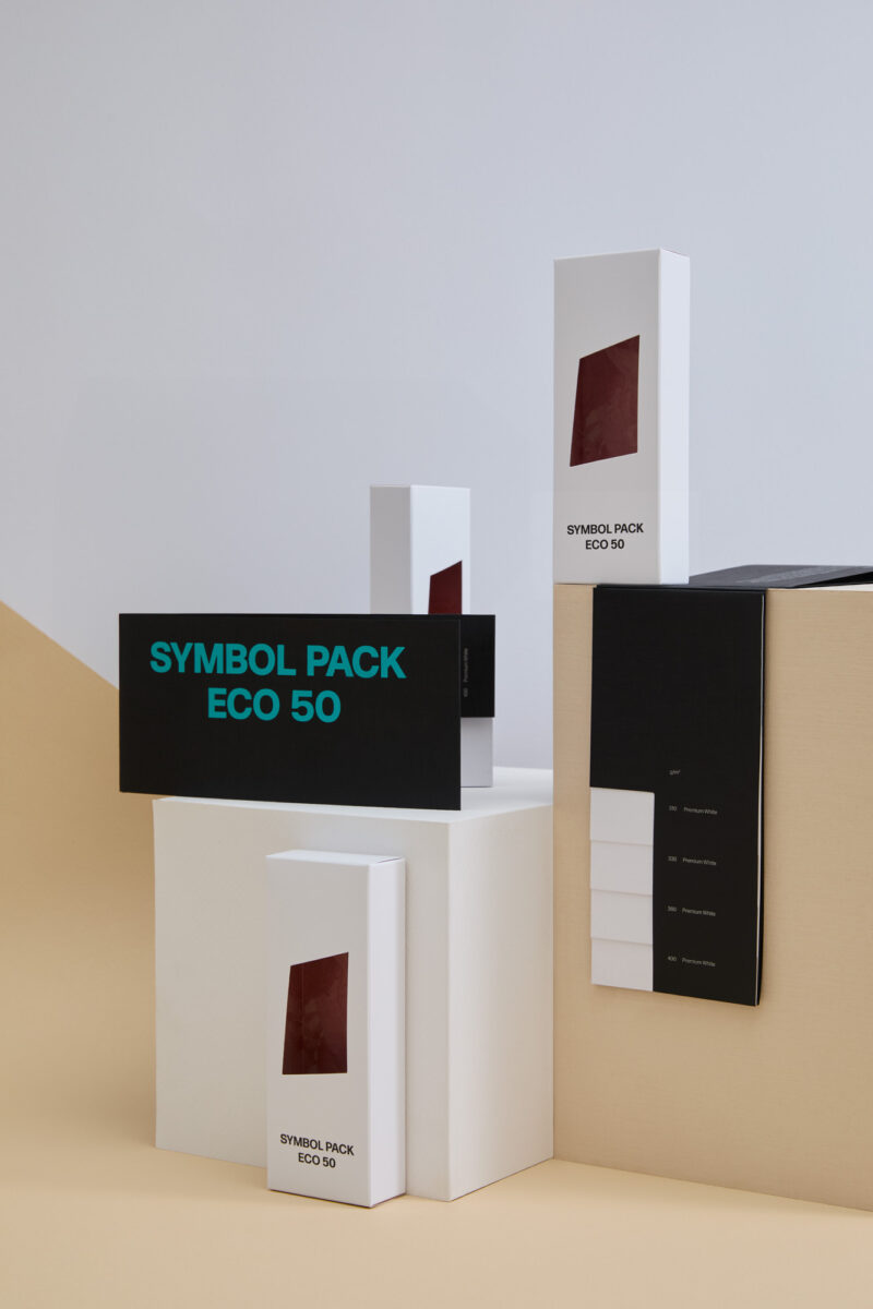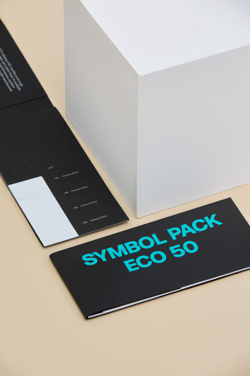 Apresentamos a última adição à nossa coleção Symbol Card: Symbol Pack Eco 50! Esta nova cartolina é produzida com celulose ECF com certificação FSC® e contém 50% de fibra reciclada. Oferece um desempenho mecânico inigualável, uma estética impressionante e a mais precisa reprodução de impressão.