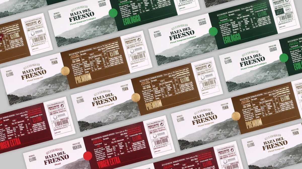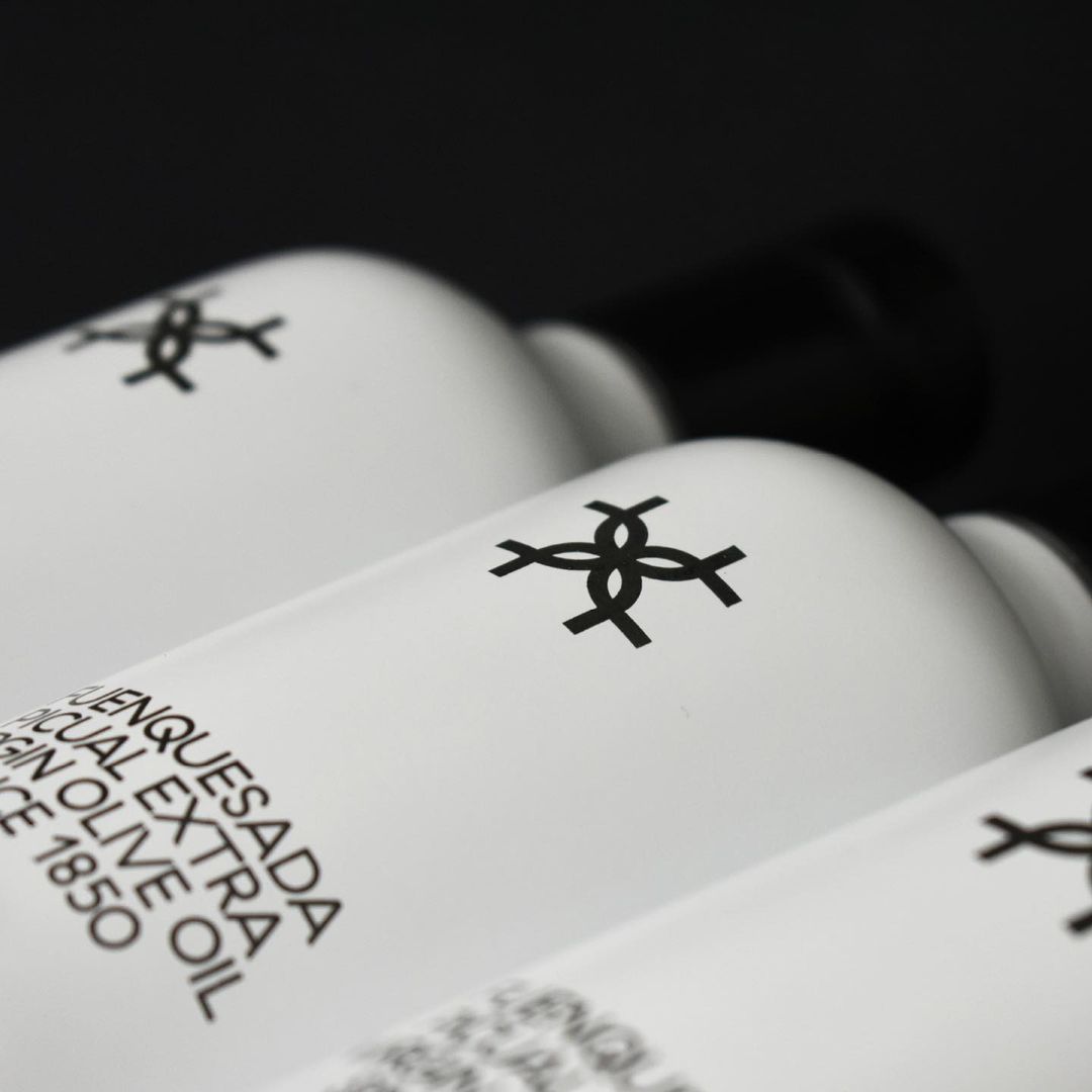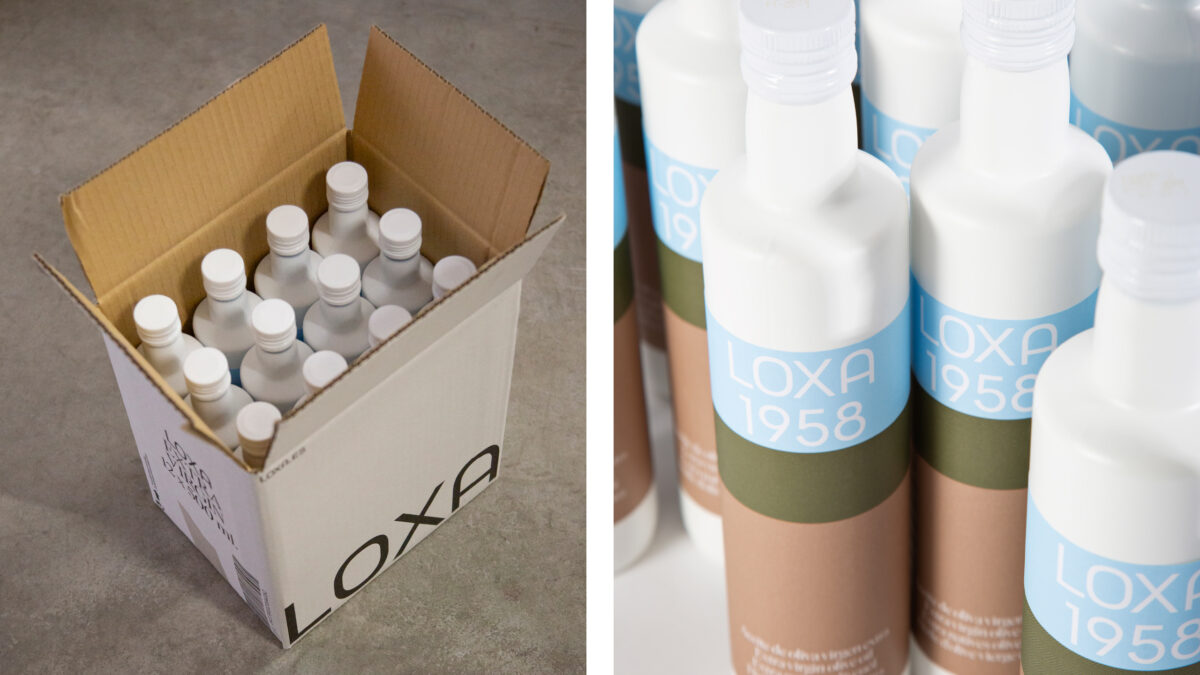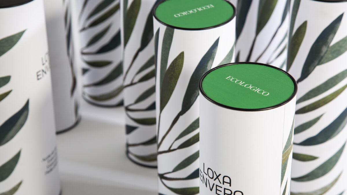 Buenaventura Estudio para Aceites Fuenquesada – Papéis utilizados: Sirio Bruno; e para Loxa – Papéis utilizados: Savile Row Tweed Extra White 100 g (Loxa Envero Lata) e Savile Row Tweed Extra White 100 g (rótulos de Loxa Vidro e de Envero Vidro).