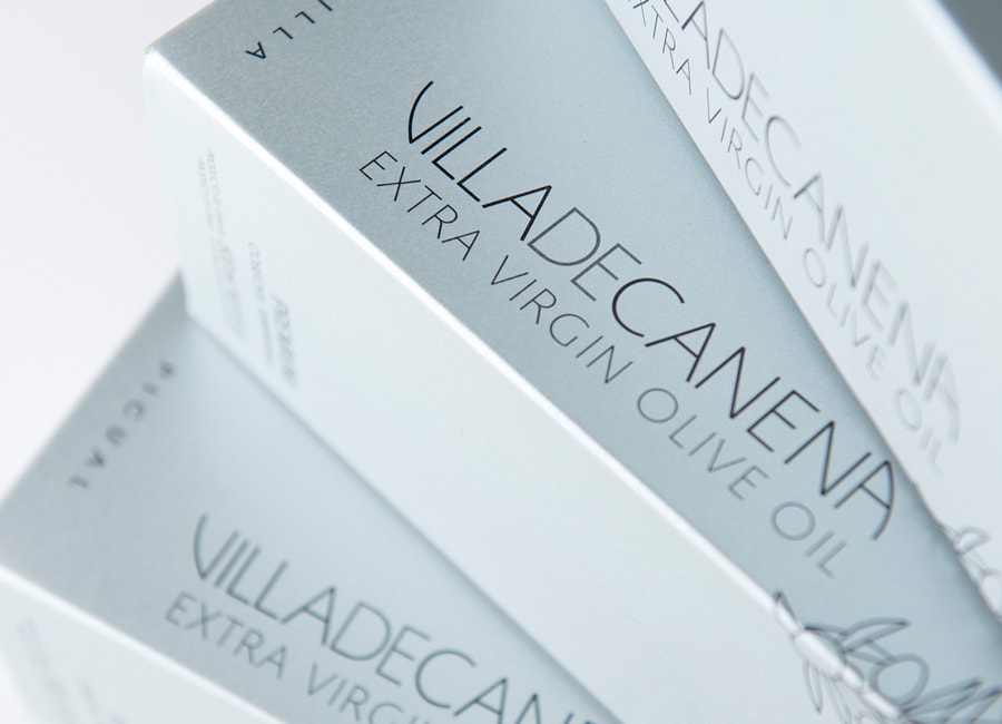CabelloXMure para Villa de Canena. Papéis utilizados: Splendorlux Metal Argento (embalagem) e Tintoretto Gesso Greaseproof (rótulo).