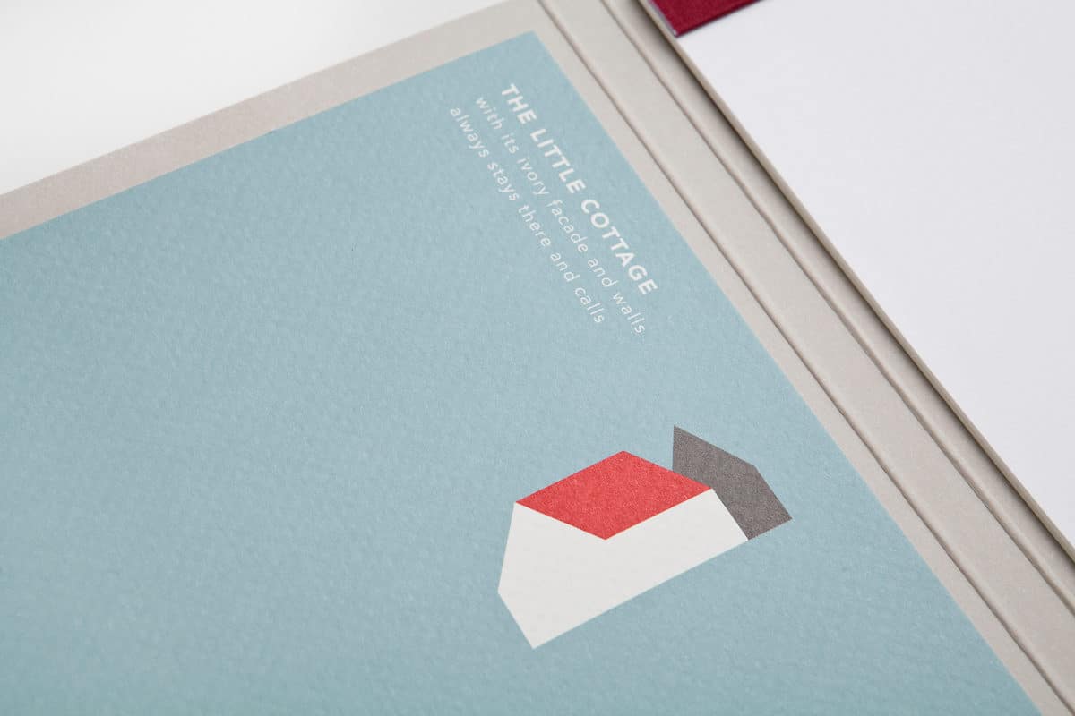O tema deste visual book é a evasão da cidade a uma cabana remota (em inglês “cottage”), misturando ilustrações simples com fundos planos e imagens fotográficas, deixando partes brancas sem serem impressas que se destacam entre os contraste de cores.