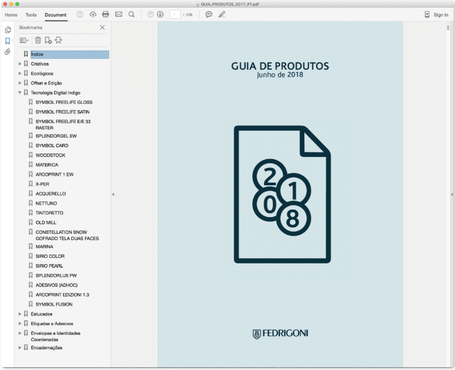 O guia de produtos interativo 2018 é um catálogo de referências que o ajudará a agilizar os processos e optimizar os seus resultados apenas num clique, permitindo-lhe navegar entre referências e descarregar o PDF com todas as nossas actualizações. As fichas técnicas permitem-lhe conhecer as características e benefícios do papel, tanto a nível de certificações como de técnicas de impressão, dobragem e comportamento dos papéis. E por último, mas não menos importante, os Perfis de Cor ICC, uma ferramenta que lhe permitirá manter uma coerência de cor nas diferentes máquinas de impressão, tanto offset como digital, assim como sobre os diferentes suportes.