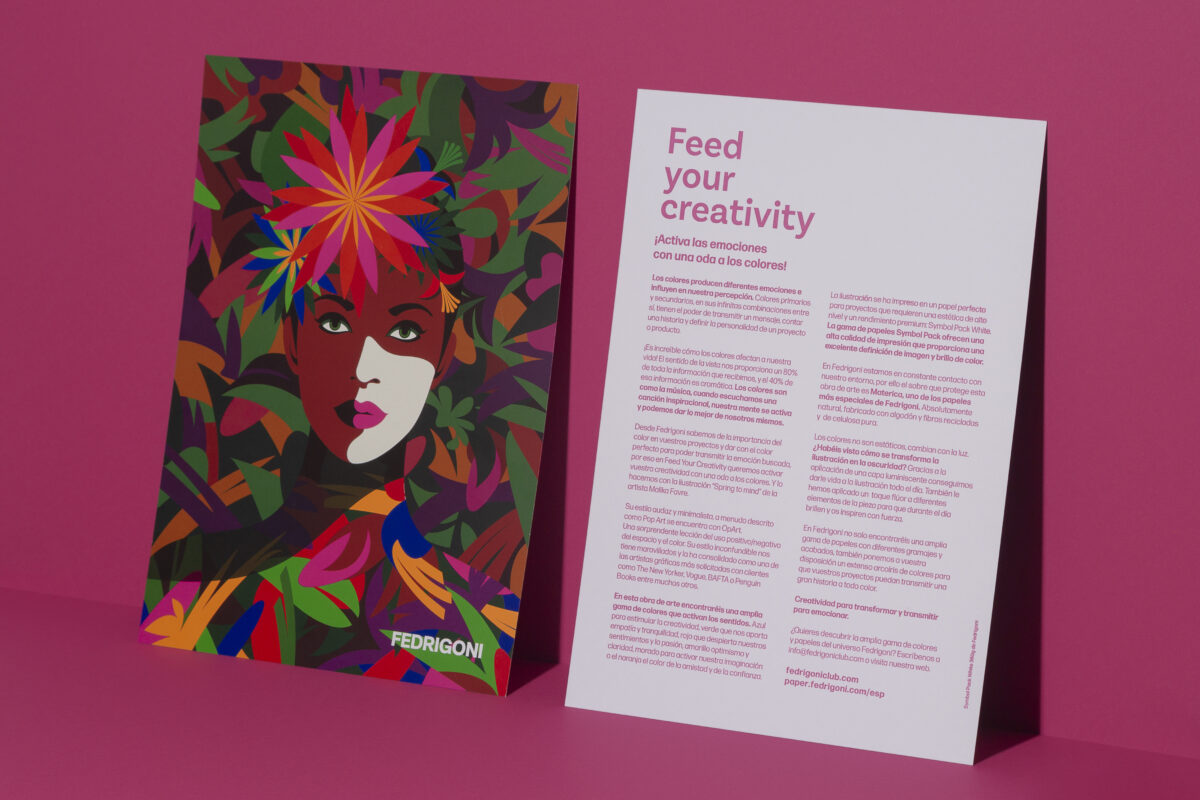 Na Fedrigoni conhecemos a importância da cor nos seus projetos e de encontrar a cor perfeita para conseguir transmitir a emoção pretendida, por isso, através de Feed Your Creativity queremos ativar a sua criatividade com uma ode às cores. E fazemo-lo com a ilustração “Spring to mind” da artista Malika Favre.