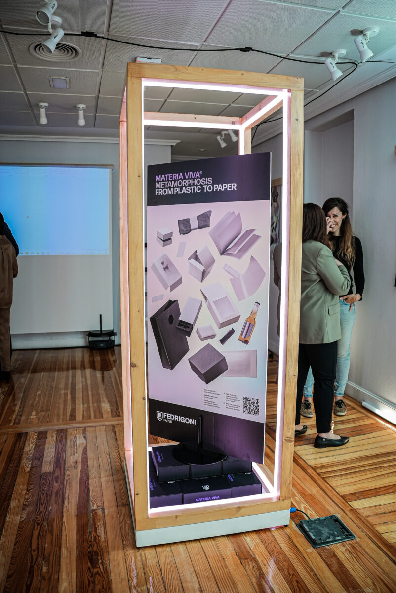 Por seu lado, Sofia Santos, Iberia Plastic to Paper Ambassador, apresentou todas as inovações e aplicações que Materia Viva Metamorphosis disponibiliza: os papéis e as tecnologias que compõem o mostruário são uma ferramenta essencial para os projetos que se propõem oferecer produtos pioneiros e amigos do planeta. A Fedrigoni iniciou uma nova revolução no mundo dos papéis e das embalagens premium.