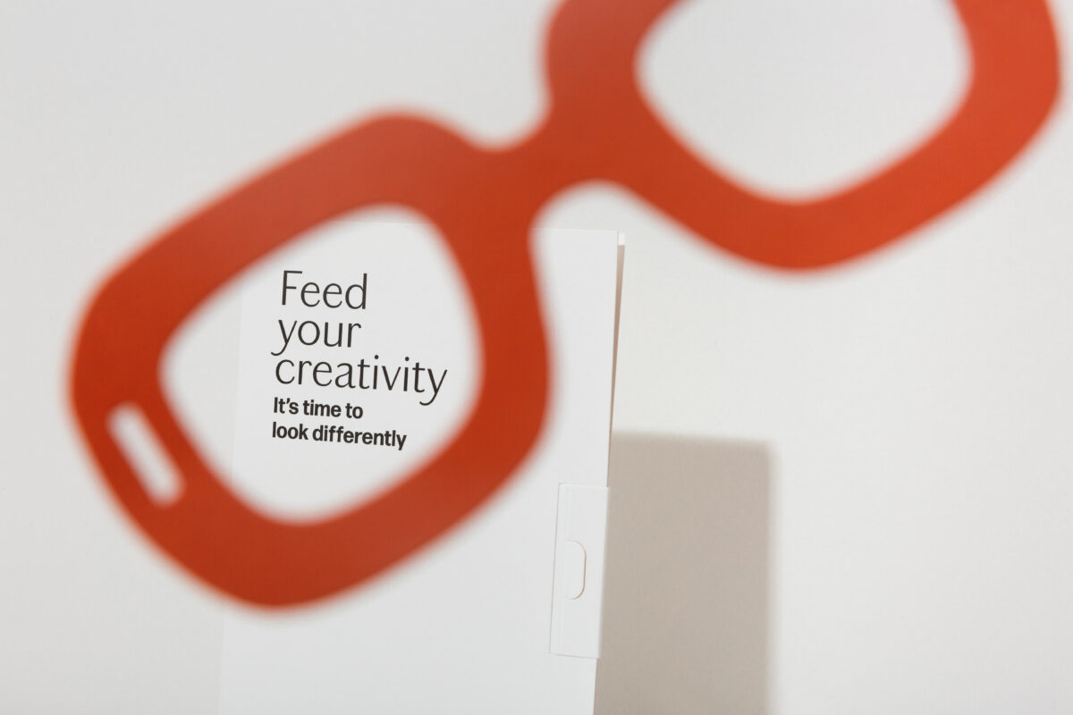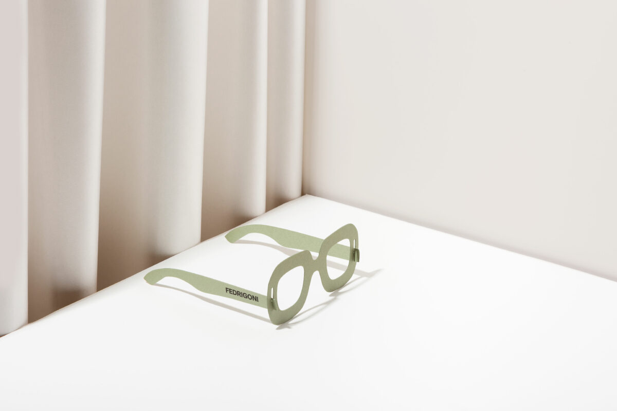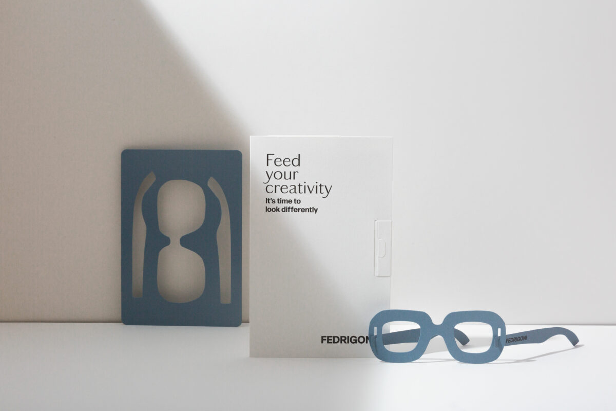 Nos diferentes eventos onde a Fedrigoni estará presente, serão distribuídos óculos de papel para que toda a gente possa descobrir uma forma diferente de ver o mundo. Estes óculos de estrutura automontável foram produzidos com papéis Materica Acqua, Materica Verdigris e Materica Terra Rossa 360 g, o envelope onde se encontram é de papel Old Mill ECO 40 Bianco 300 g e as tintas utilizadas são ecológicas de base vegetal.