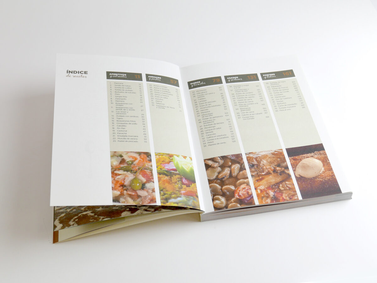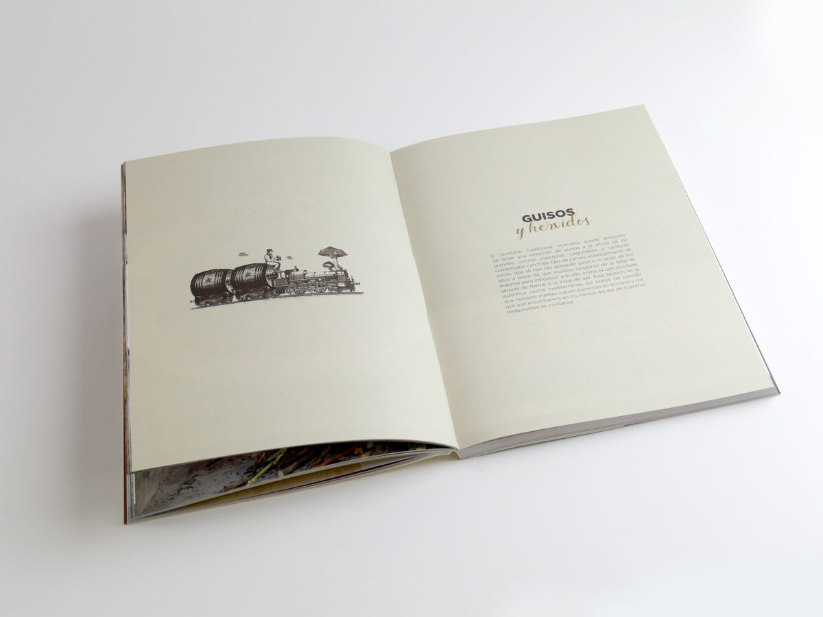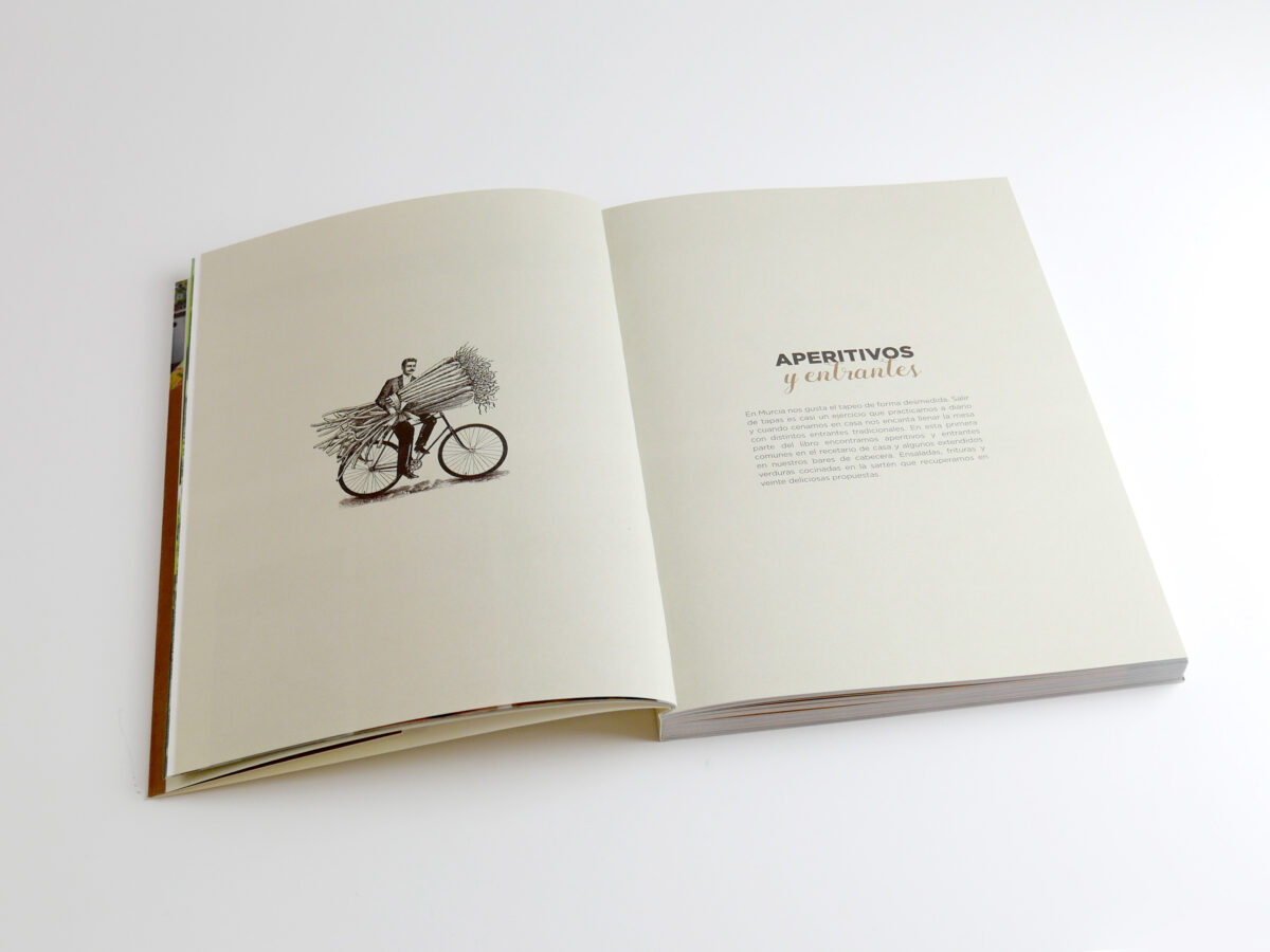 Em “La vuelta a Murcia en 80 recetas” da empresa Brújula del Gourmet, o estúdio Envolture transmite as emoções que surgem ao degustar 80 receitas tradicionais de Múrcia, apresentadas como uma viagem gastronómica pela região. Cada secção do livro é representada por um meio de transporte associado à zona, reinterpretado a partir de alimentos e utensílios da terra, em Arena Natural Bulk 120 g e Materica Gesso 250 g.