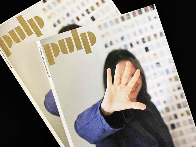 A PULP 17 foi totalmente impressa na gama de papel Arena da Fedrigoni, incluindo Arena Extra White Smooth 140 g, Arena Ivory Bulk 120 g, Arena White Rough 140 g e Arena Natural Smooth 140 g. A capa, impressa em Arena White Smooth 250 g, é protagonizada pela designer Irma Boom, vista pela lente de Robert Billington.