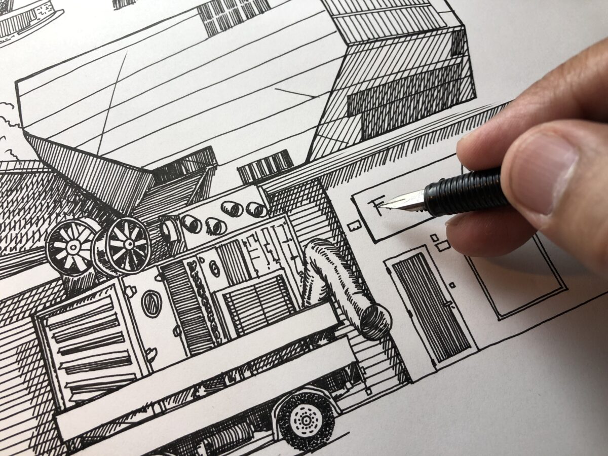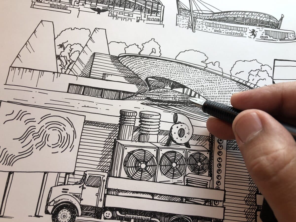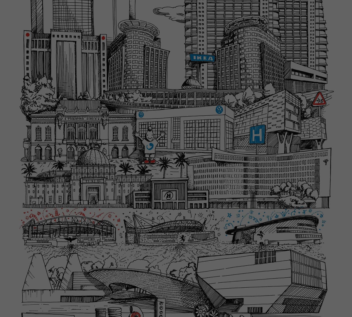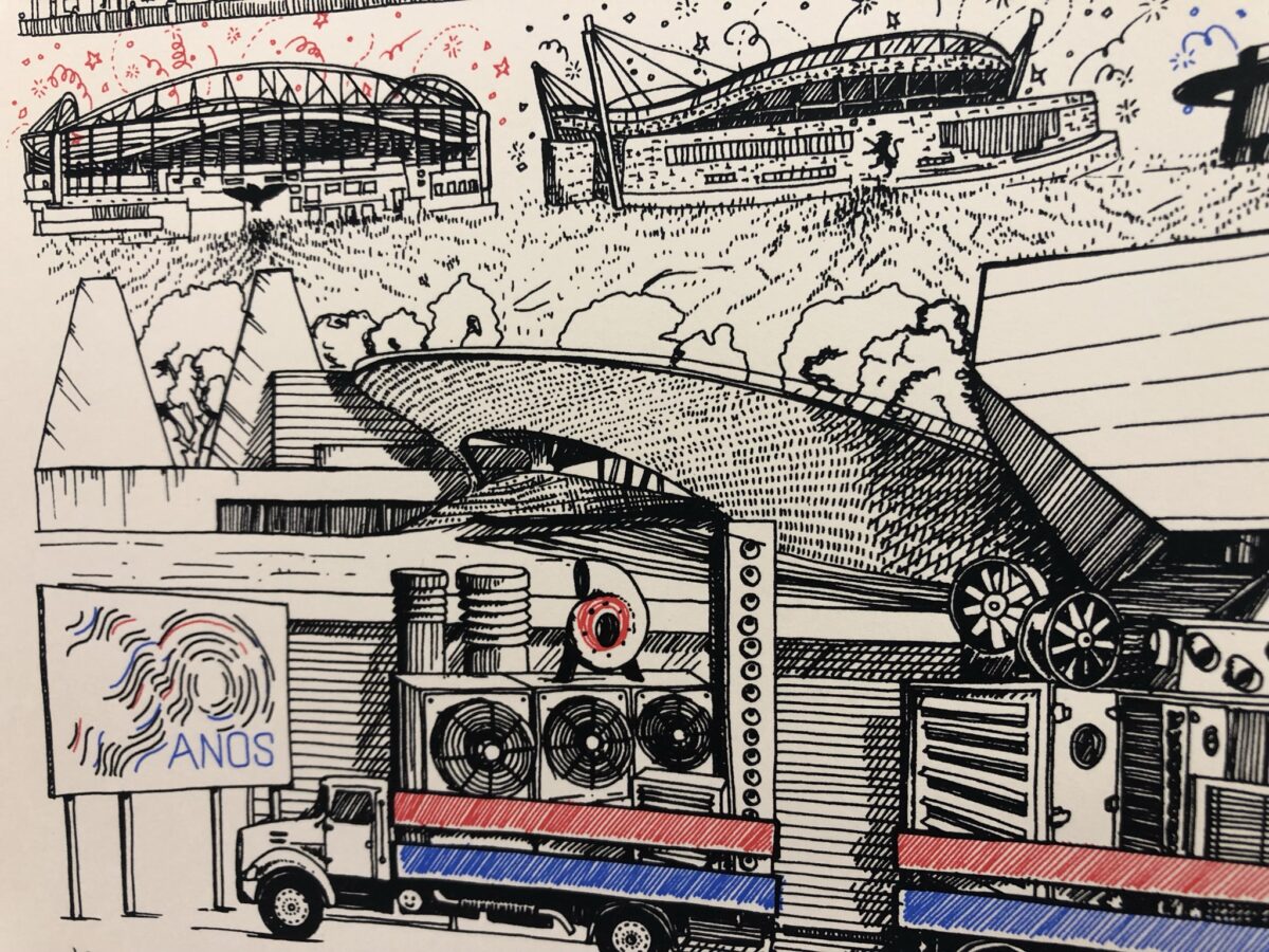O ilustrador português Adão Conde apostou neste conjunto para desenvolver uma preciosa alegoria da história da empresa, especialista em soluções de climatização, onde reuniria algumas das obras, clientes e projetos que fizeram parte destas três décadas de percurso.