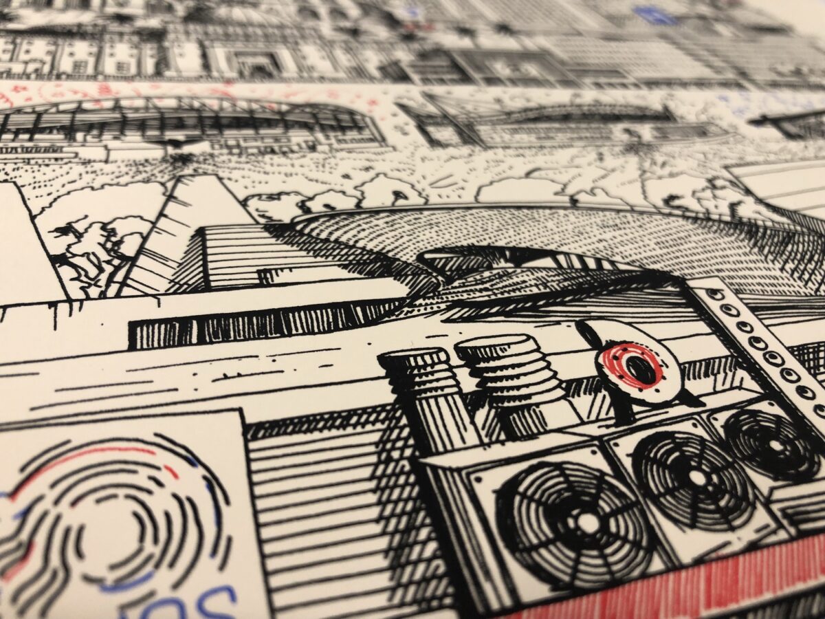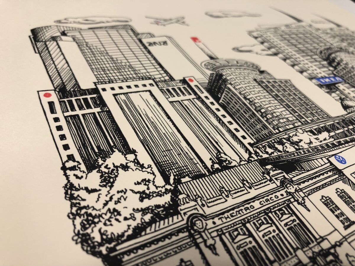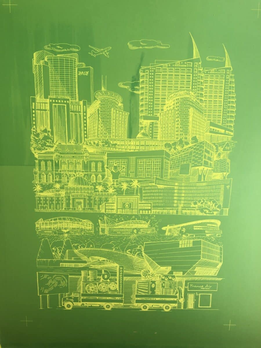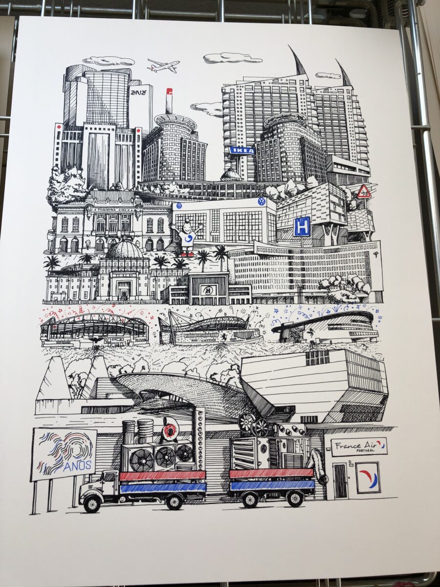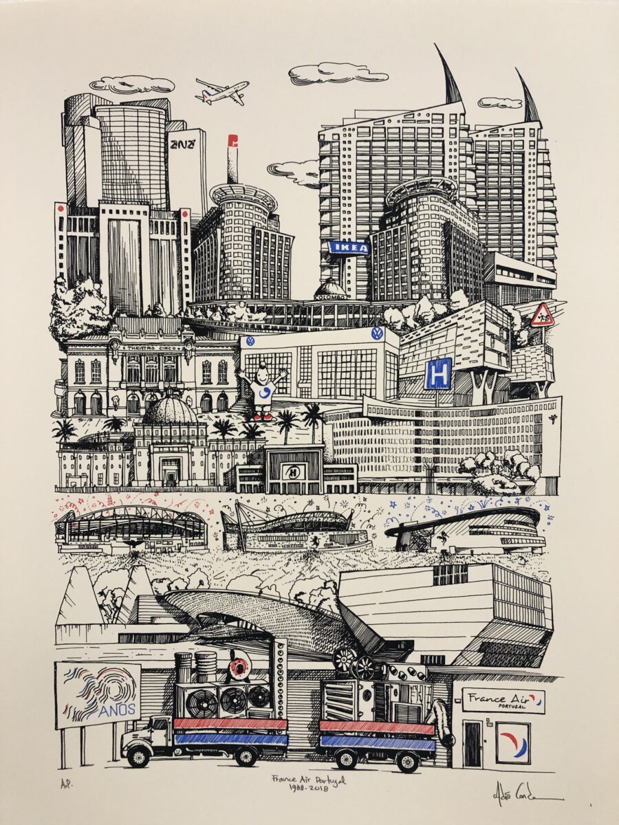 A serigrafia magistral -realizada a 3 cores, azul, vermelho e preto– reúne algumas das recordações mais emblemáticas destes 30 anos de sucesso da empresa: o Aeroporto e o Metro de Lisboa, as Torres Residenciais São Gabriel e São Rafael, a mascote GIL da Expo 98, os estádios dos três maiores clubes portugueses e vários equipamentos culturais, o Theatro Circo, a Casa das Histórias, a Casa da Música e o MAAT em Belém.