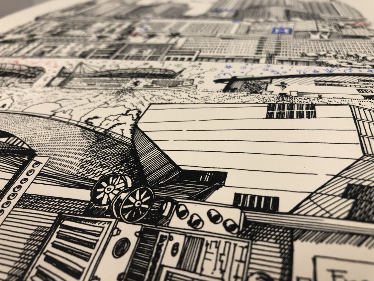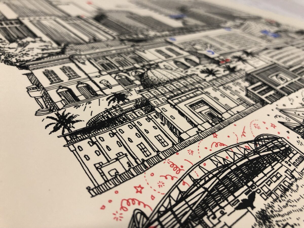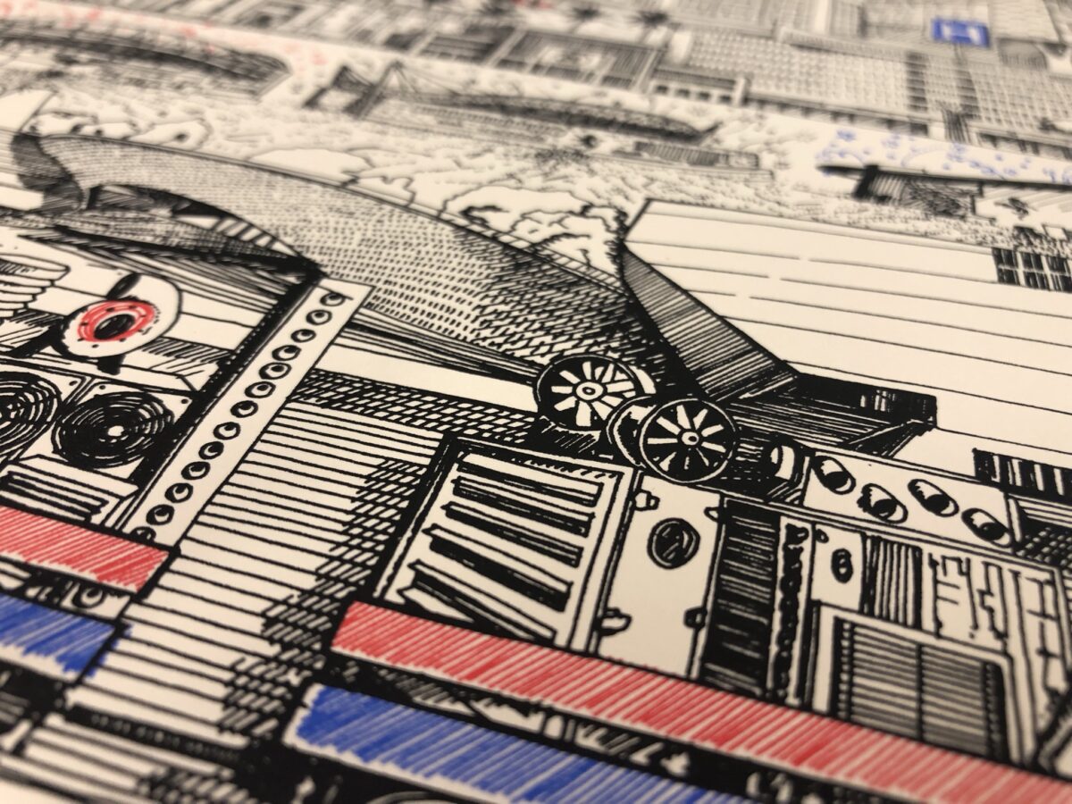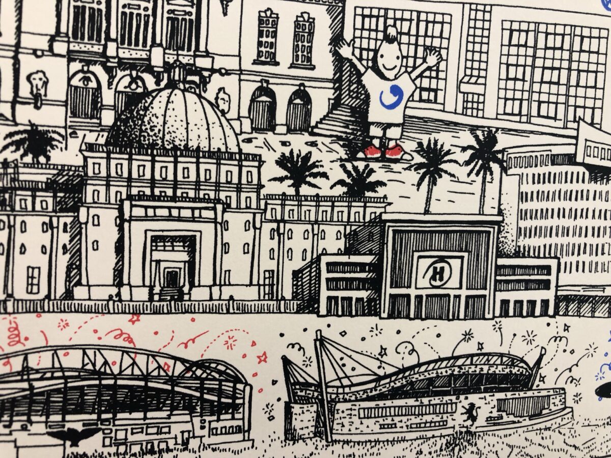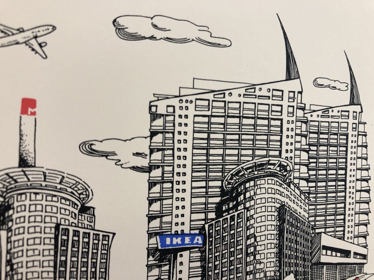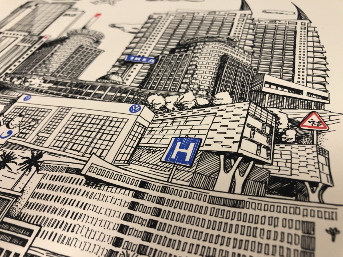 A serigrafia magistral -realizada a 3 cores, azul, vermelho e preto– reúne algumas das recordações mais emblemáticas destes 30 anos de sucesso da empresa: o Aeroporto e o Metro de Lisboa, as Torres Residenciais São Gabriel e São Rafael, a mascote GIL da Expo 98, os estádios dos três maiores clubes portugueses e vários equipamentos culturais, o Theatro Circo, a Casa das Histórias, a Casa da Música e o MAAT em Belém.