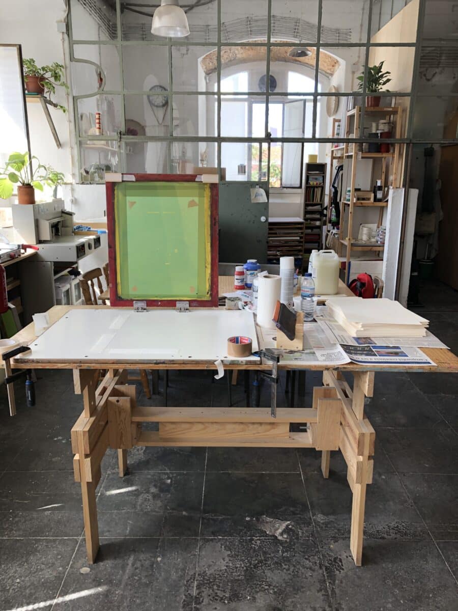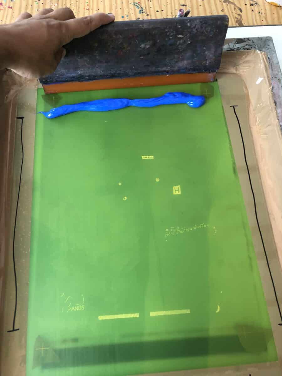 Nesta ligação pode ver o processo completo de elaboração do projeto, desde os primeiros esboços de estudo de sombras e composição, ao desenvolvimento dos desenhos finais e à preparação das tintas para cada uma das cores da serigrafia, azul, vermelho e preto.