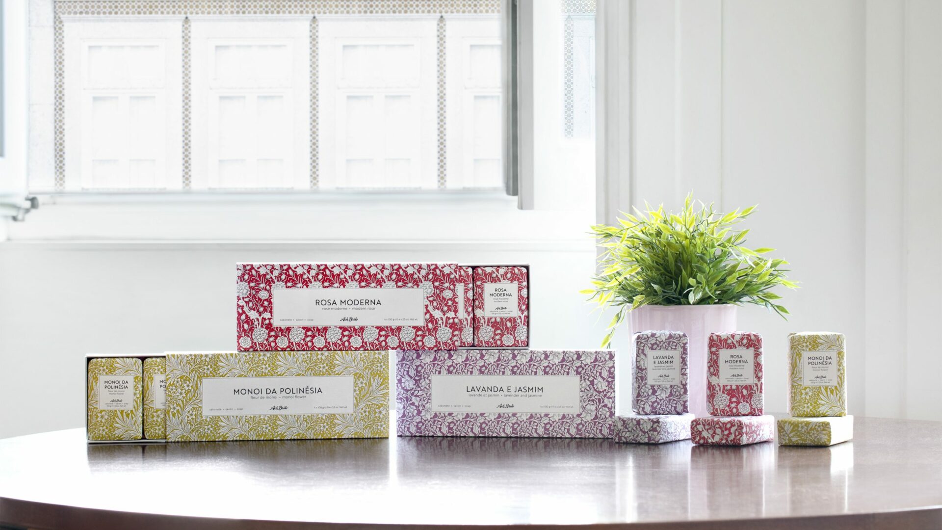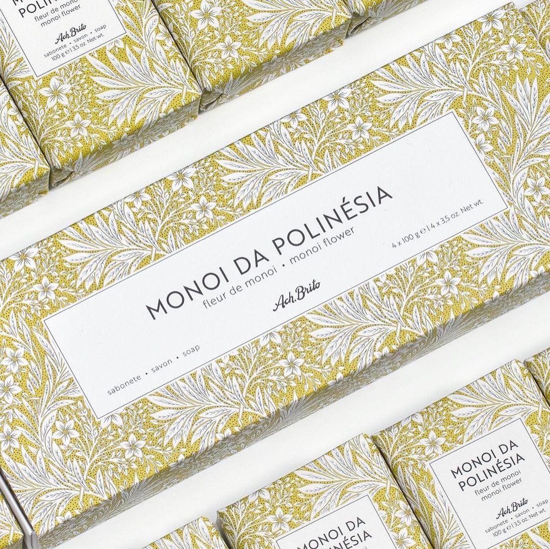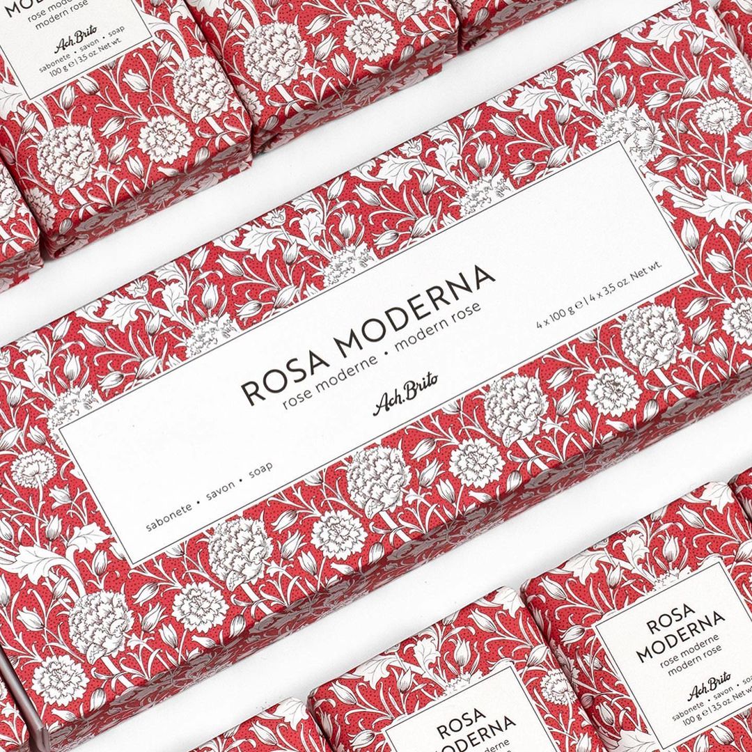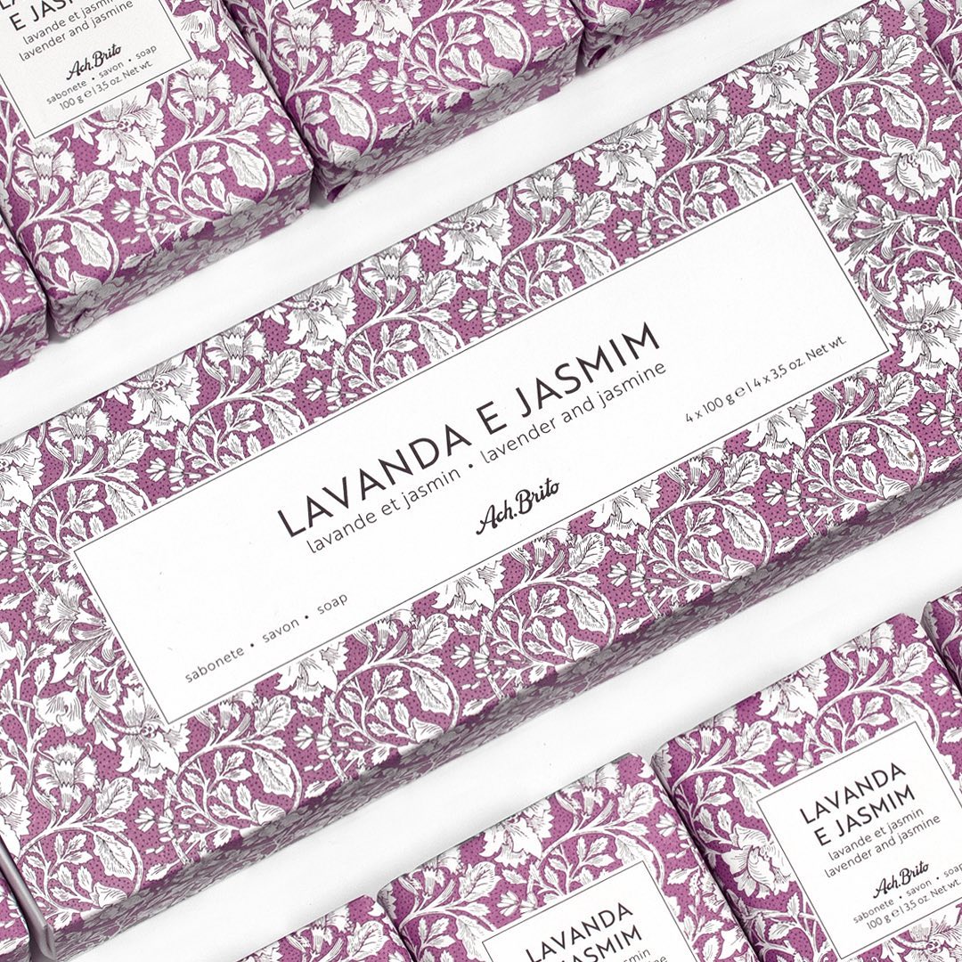 “Flores” é uma linha premium de sabonetes de alta qualidade cuja imagem foi inspirada nos arquivos centenários da Ach. Brito.