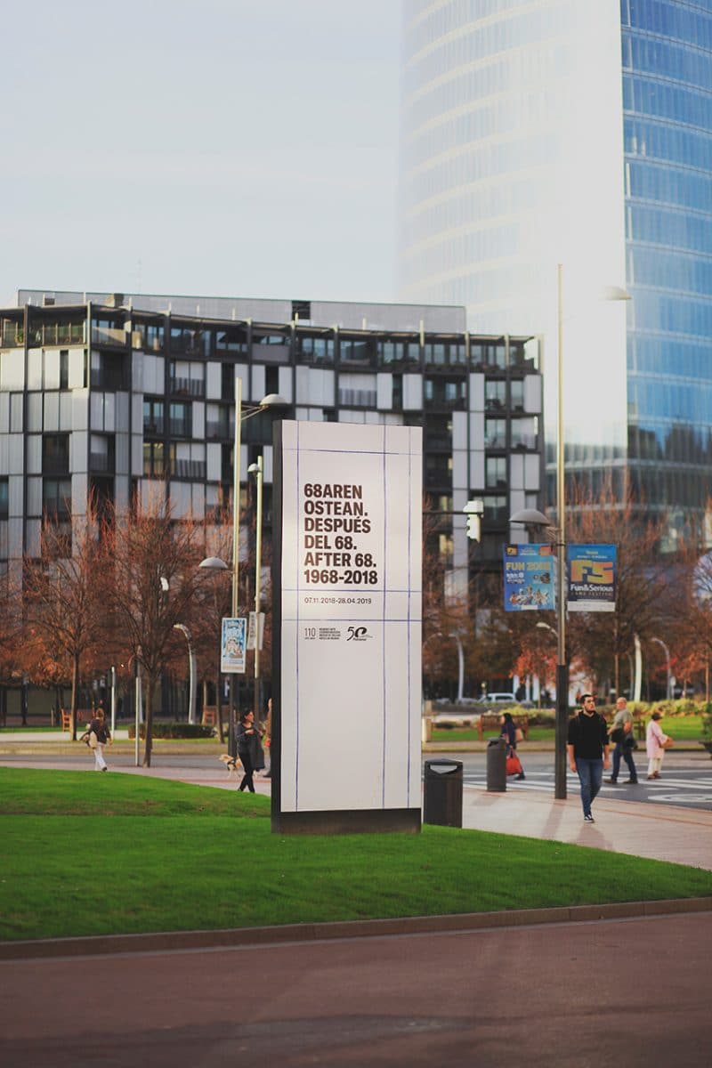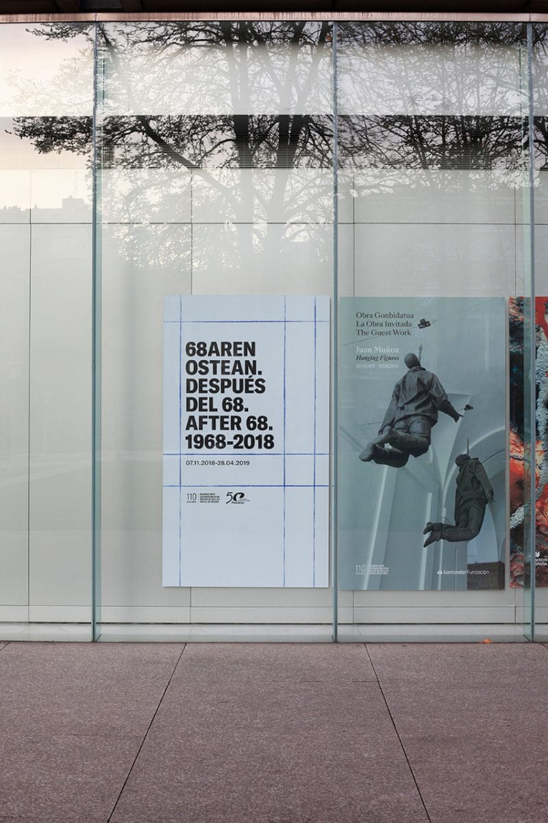 Quando os responsáveis da exposição “Depois de 68. Arte e práticas artísticas no País Basco 1968-2018” os contactaram para desenvolverem a comunicação visual da exposição, que homenageia as últimas cinco décadas de arte basca, a equipa da Franziska percebeu claramente que necessitava um elo de ligação entre a arte e a própria imagem do edifício do museu.