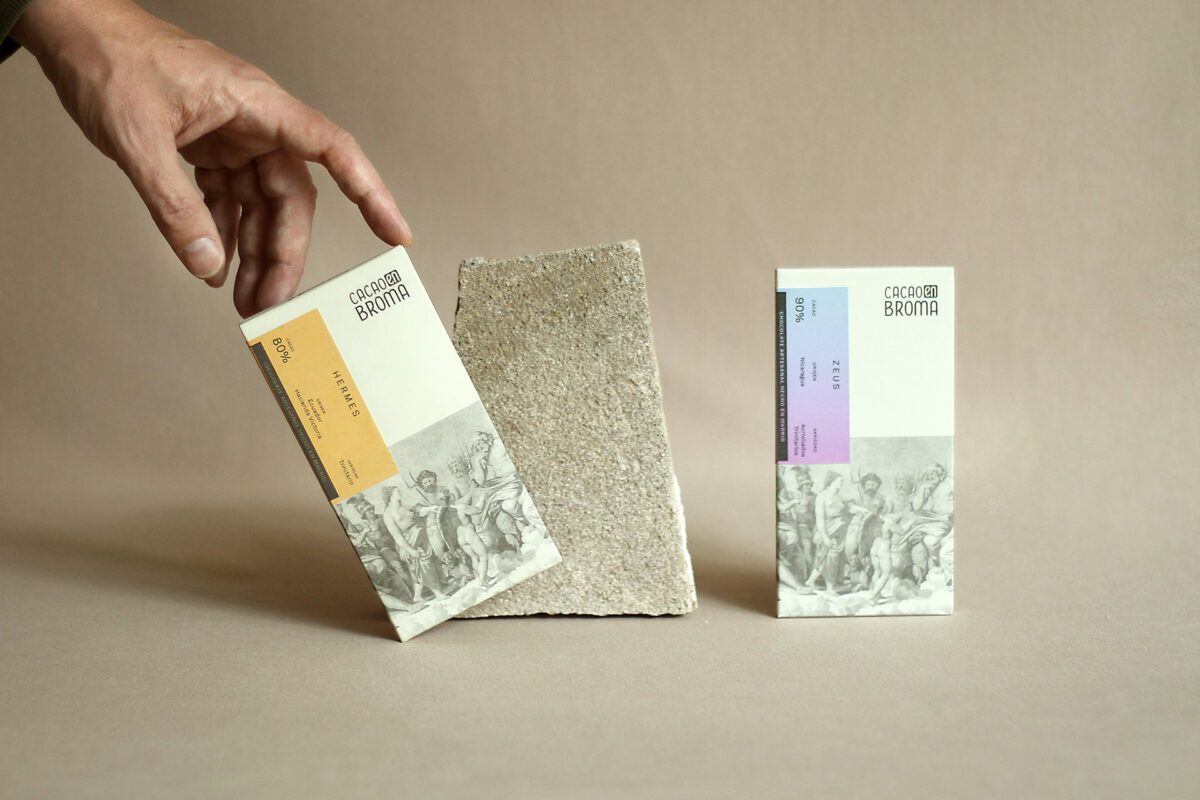 Os deuses gregos são os protagonistas que explicam o carácter de cada chocolate e ornamentam cada tablete num contexto original e histórico.