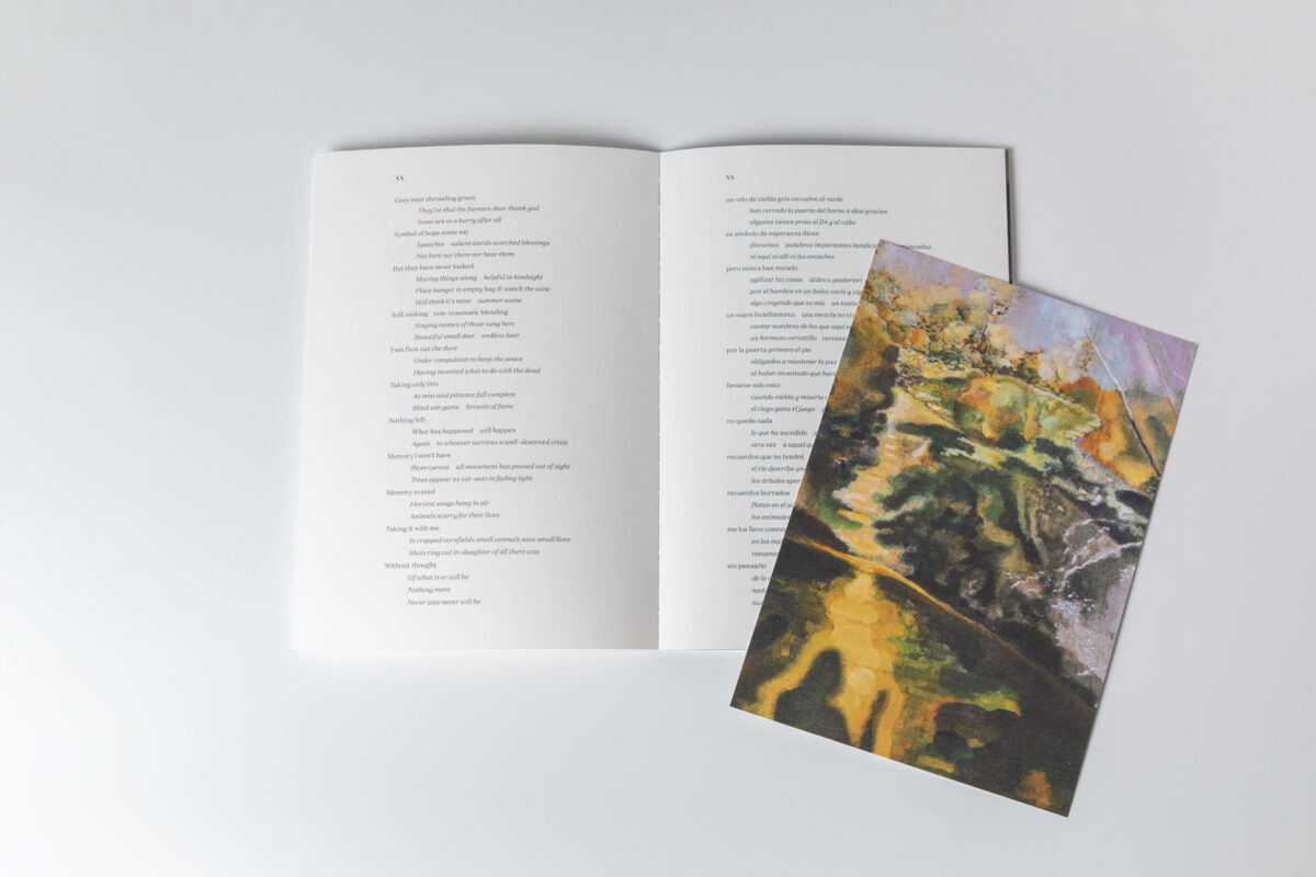 A publicação de “Desde la naturaleza” é uma joia de design e execução. Encapsulada em dois tipos de envelopes feitos com dobragem japonesa, cada um destaca um detalhe único de duas pinturas distintas de Javier Arce. Esta escolha não só protege o conteúdo, como também antecipa a experiência estética e sensorial que aguarda no interior. Ao abrir estes envelopes, o leitor depara-se com páginas que intercalam habilmente reproduções das obras de Arce com poemas em inglês e castelhano, criando um profundo e emotivo diálogo entre arte visual e literatura.