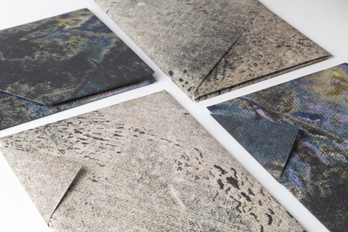 Estes materiais não são escolhidos apenas pela sua qualidade, mas também pela sua capacidade de complementarem e realçarem a arte impressa. A técnica de impressão inclui envelopes com cortes de troquel que conferem um pormenor tátil, enquanto a encadernação com lombada cosida com fio branco à vista reflete a atenção ao detalhe e a qualidade artesanal.