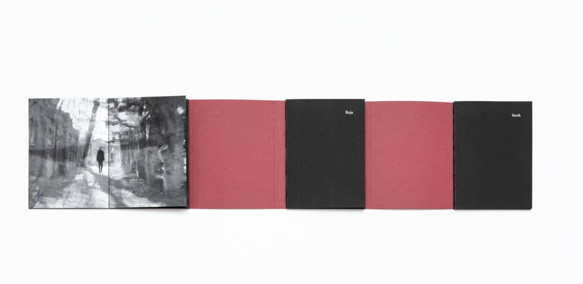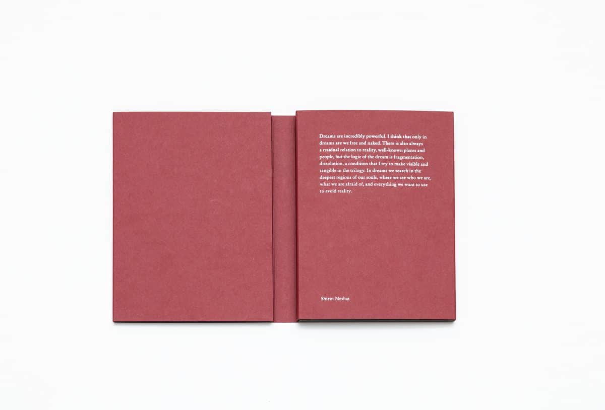 O tríptico desdobrável permite explorar as três narrativas de forma transversal e estabelecer um diálogo dinâmico, que revela um fio condutor entre os sonhos das três mulheres. A impressão em preto e prata, baseada na inspiração de Neshat em Man Ray, prende-nos no mundo íntimo das protagonistas.