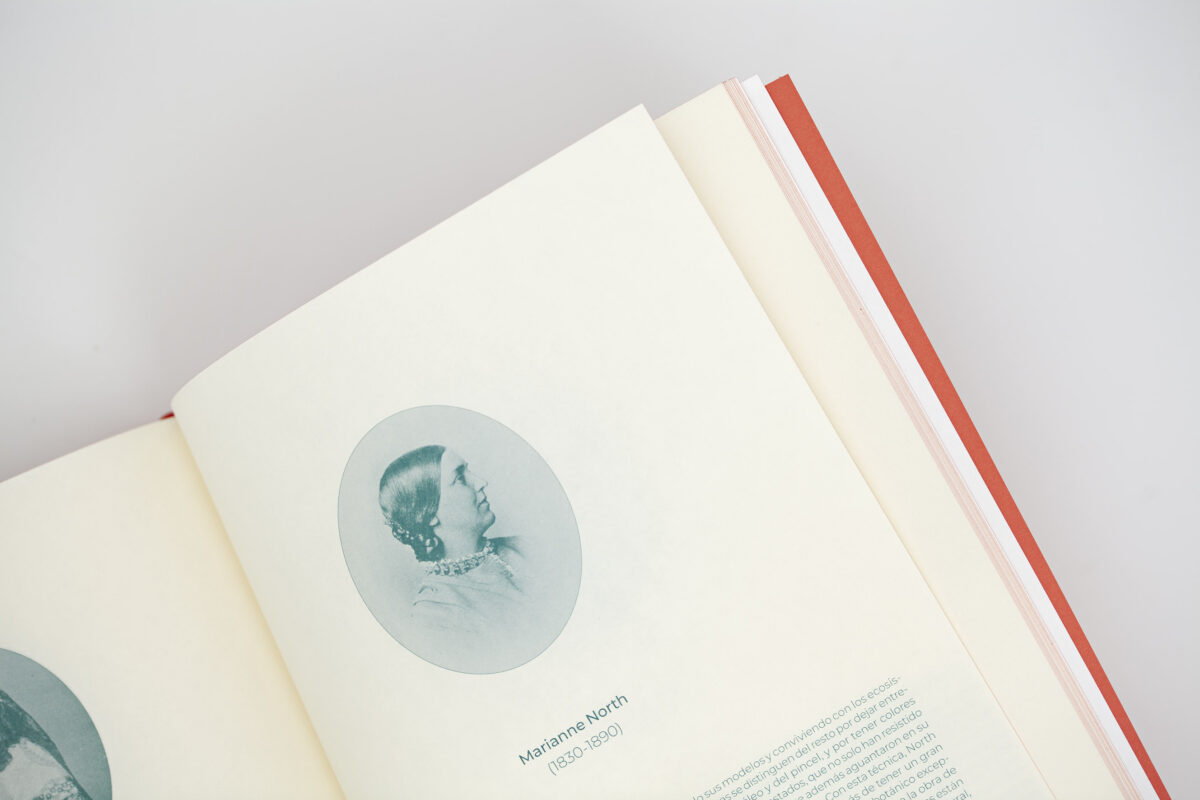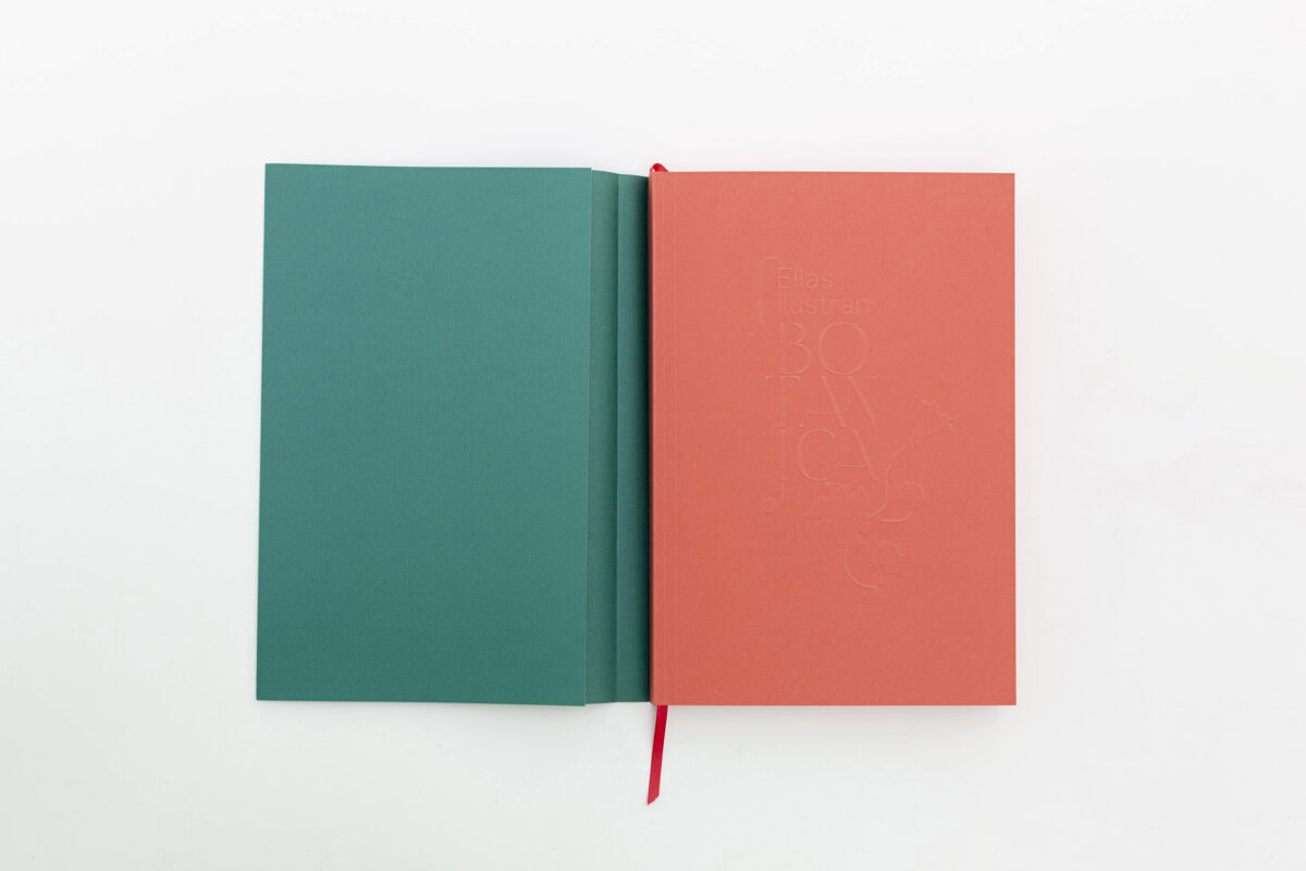 As técnicas de impressão, como a impressão offset a quatro cores e o relevo a seco na capa, a sobrecapa com badanas máximas, a encadernação rústica pelo método da brochura suíça com fio, as bordas pintadas em rosa flamingo e a fita marca-página são detalhes que refletem o cuidado e a precisão dedicados à produção deste livro. Estas técnicas não realçam apenas a apresentação visual do livro, pois destacam também a importância da preservação e da celebração do legado das mulheres no campo da botânica.