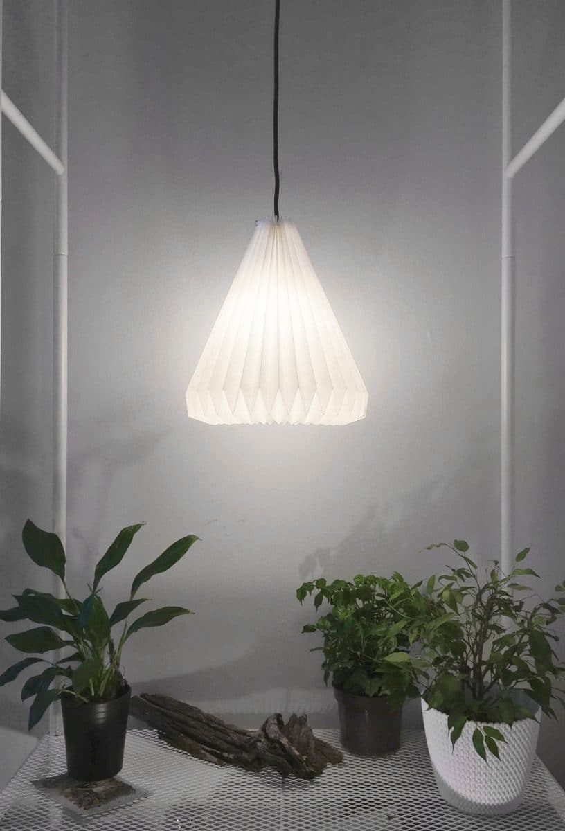 Partindo da milenária técnica do Origami, também de origem oriental, Fish’s Nest estuda constantemente novas formas de construção por meio de dobragens regulares com Pergamenata 160 g. da Fedrigoni. Com base nessa técnica são criados exoesqueletos que envolvem a luz, criando uma atmosfera suave sem perder a sua intensidade.