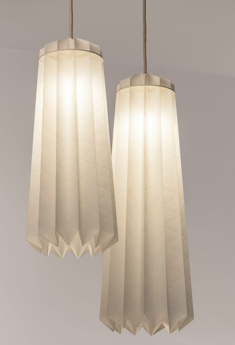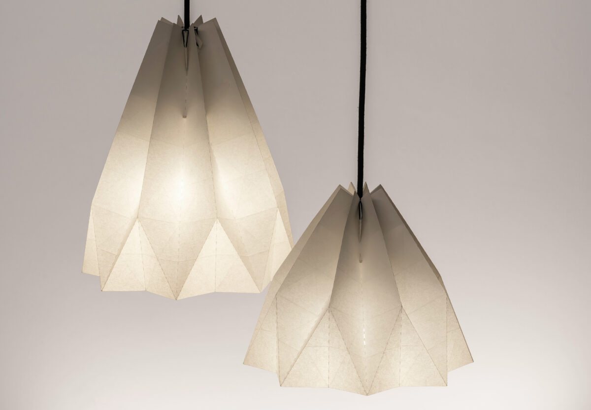 A técnica do origami, uma expressão artística que requer precisão e delicadeza, permite à GEKKŌ BCN dar vida a desenhos que se tornam verdadeiras esculturas de luz. Cada dobra, cada curva, está imbuída de intenção e propósito, culminando num candeeiro que é simultaneamente uma fonte de iluminação e uma obra de arte.
