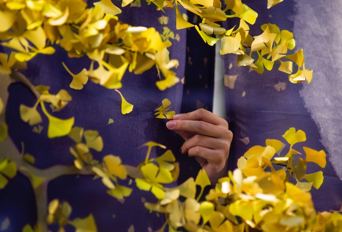 Durante o outono, ocorre no Japão o “momiji”, a mudança da cor das folhas das árvores para tons dourados, laranjas e avermelhados, uma mudança de tonalidades que é especialmente impressionante na árvore da Ginkgo Biloba, cujas folhas parecem asas de borboletas douradas.