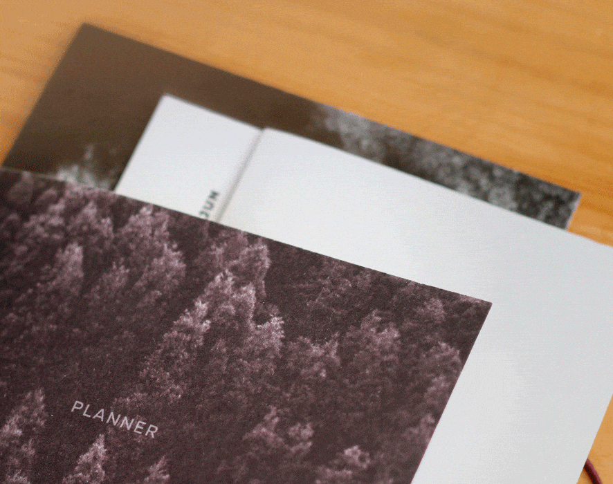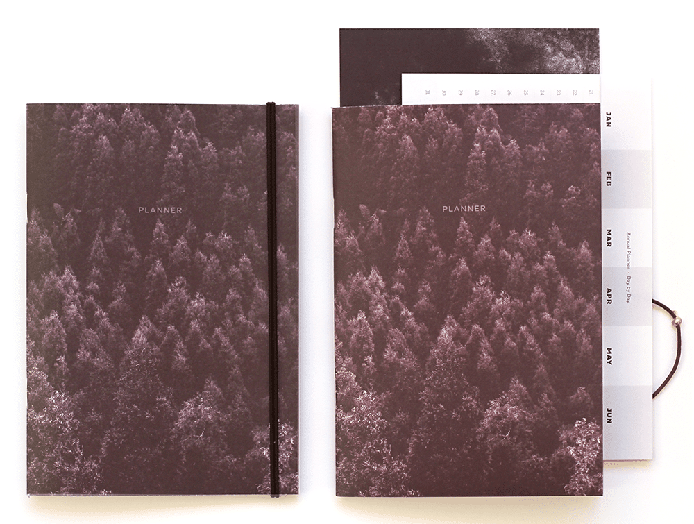 Para produzir esta agenda inspirada na natureza, escrita em inglês e com um tamanho de 13,5 cm x 19,5 cm, foi utilizada impressão offset nas capas e impressão digital no interior e no planificador anual.