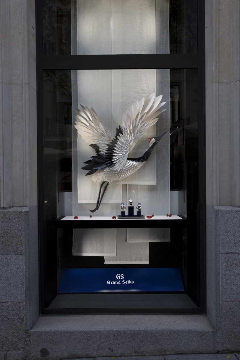 Foi esta atmosfera, o cenário de algumas das mais belas lendas do folclore japonês, que o designer Luca Hugo Brucculeri quis representar na montra da loja Grand Seiko de Madrid.
