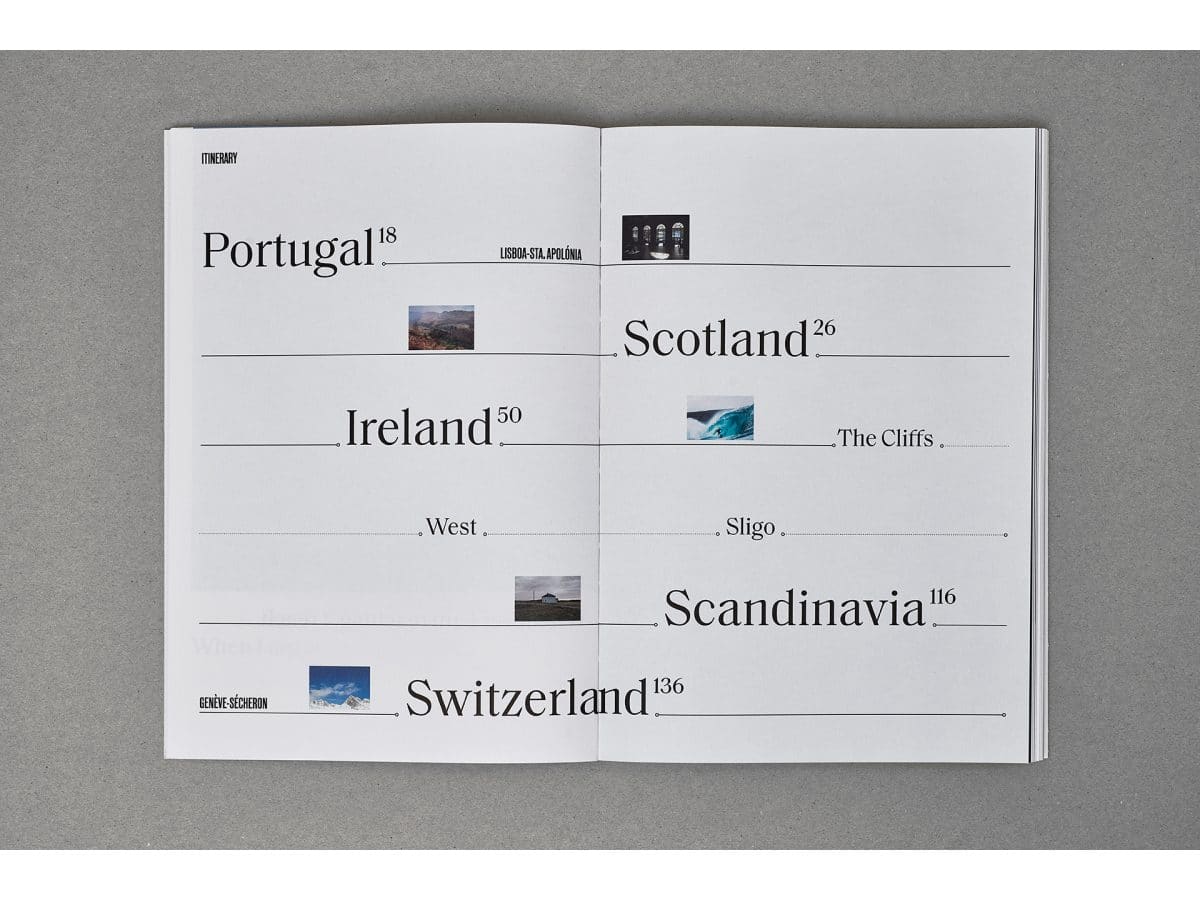 No seu interior -criado com Arena Natural Bulk 150 g– o leitor viaja até cada país visitado, sendo guiado por um “anfitrião” que redige, de forma livre e contemplativa, um texto sobre a sua experiência no périplo, através de notas de viagem sobre os momentos que marcaram cada passo.