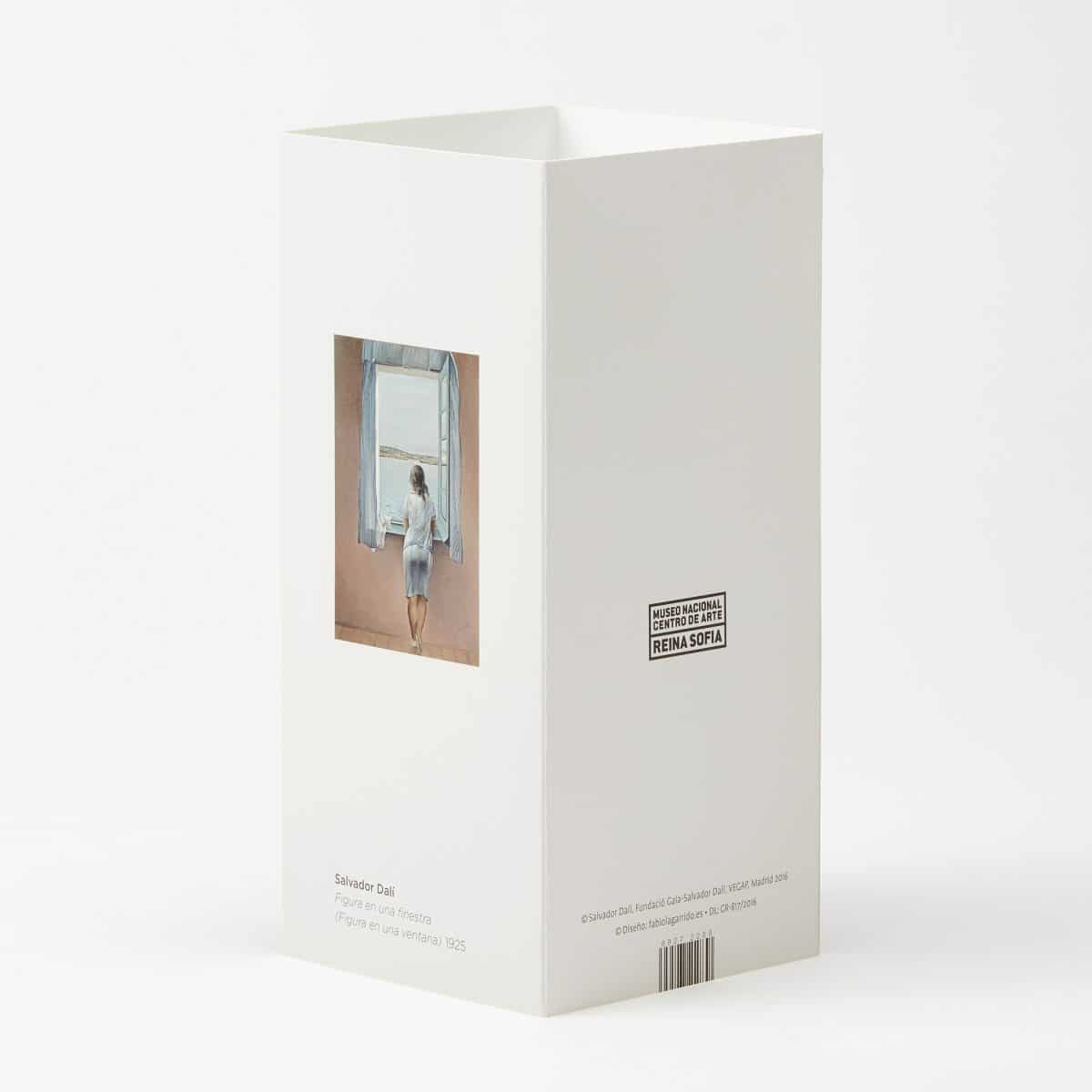 O mesmo papel –Symbol Tatami White 250 g, caracterizado pela celulose ECF ecológica, certificação FSC® e pelo acabamento acetinado em ambas as faces- e a mesma técnica de impressão -Impressão offset-, servem de fio condutor para a recriação das famosas obras de Joan Miró, “Aidez l’Espagne” (1937), e de Salvador Dalí, “Figura en una finestra” (1925). E fazê-lo em formato pop-up (9,7 x 15 cm de dimensão), com cortes de troquel e quadricromia em ambas as faces, dá um novo ar à mensagem de ambas as obras.