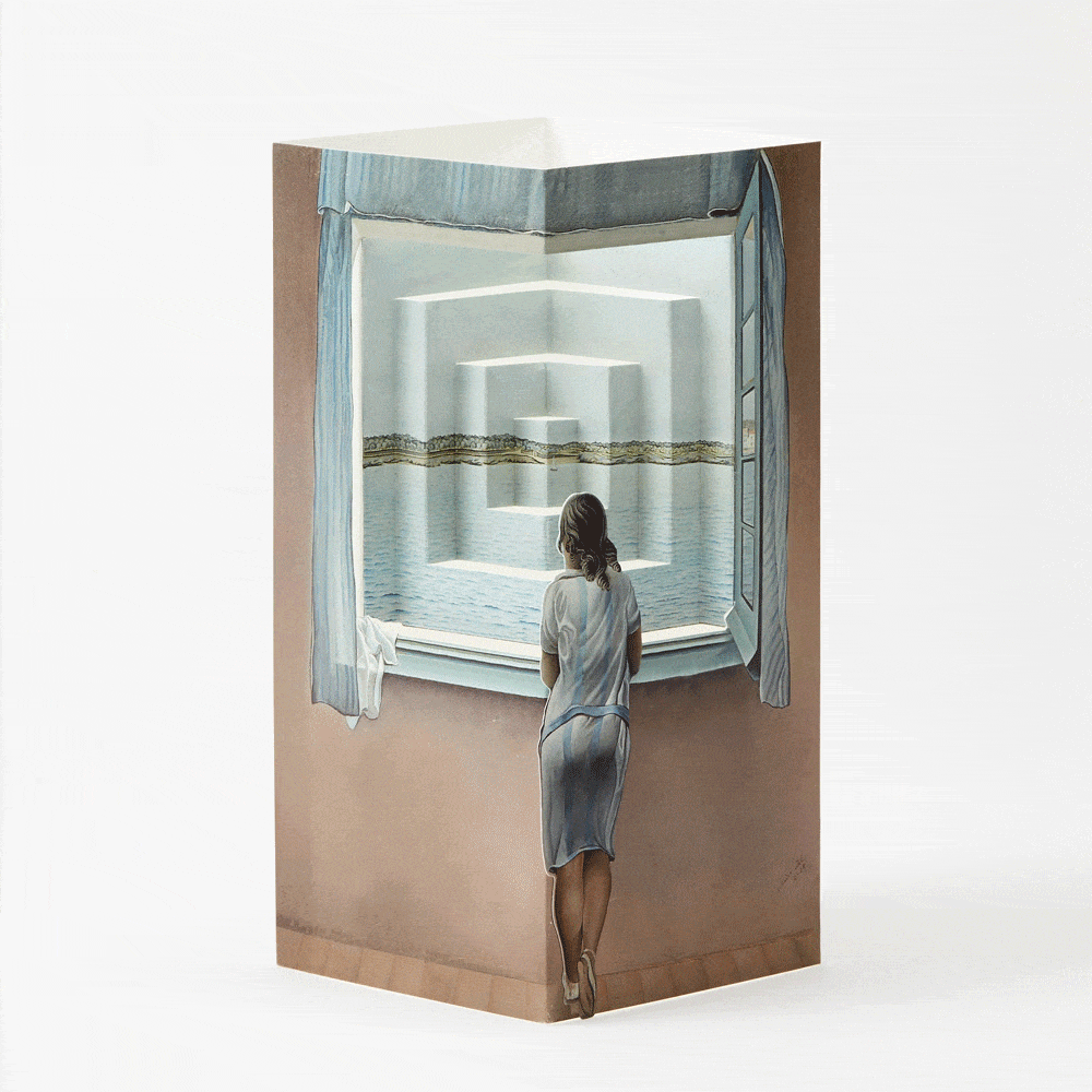No caso da célebre “Figura en una finestra” (Figura na janela) de Dalí, onde o pintor retratava a figura da sua irmã Ana, a intervenção da agência joga com o volume e a decomposição através de um emaranhado cúbico do espaço e da paisagem. A pergunta é: as dobragens ajudam a tornar mais enigmático e sonhador o olhar da irmã do artista?