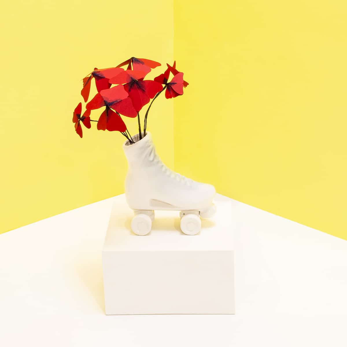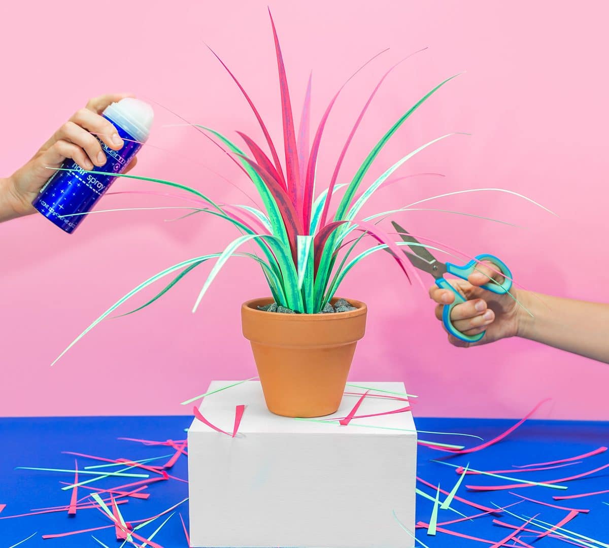 Para o conseguir, o estúdio imaginou como seria o habitat natural de algumas plantas de papel que, ao contrário de qualquer planta de interior, não precisam de água nem de cuidados. A partir daqui criaram um mundo onírico de cartolinas e papéis de cor, que se transformam em cenários verdadeiramente atraentes e vibrantes.