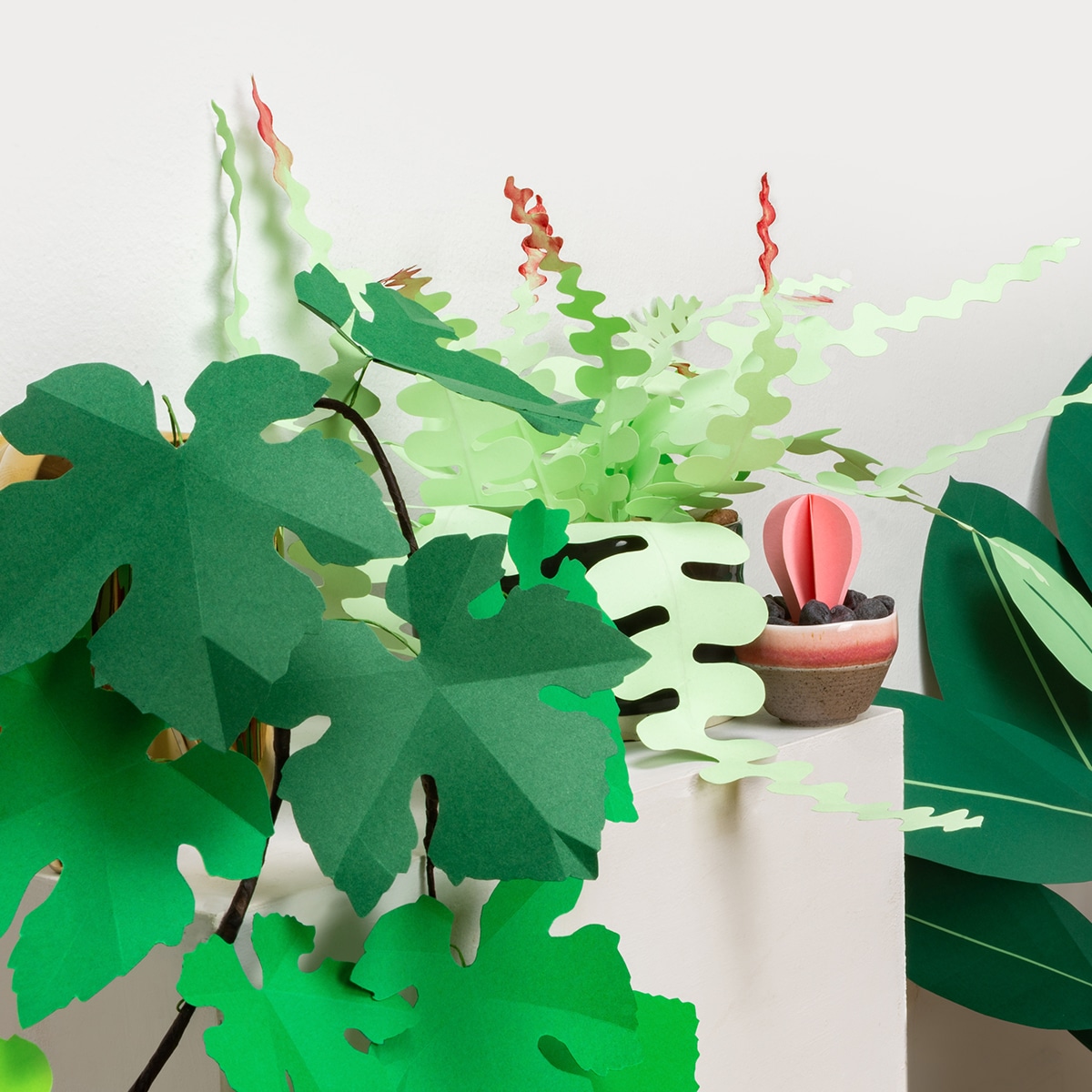 Para esses há universos paralelos, estratégias para “compor o ramalhete” de forma a que os espaços interiores possam brilhar com vida própria à base de plantas de papel.