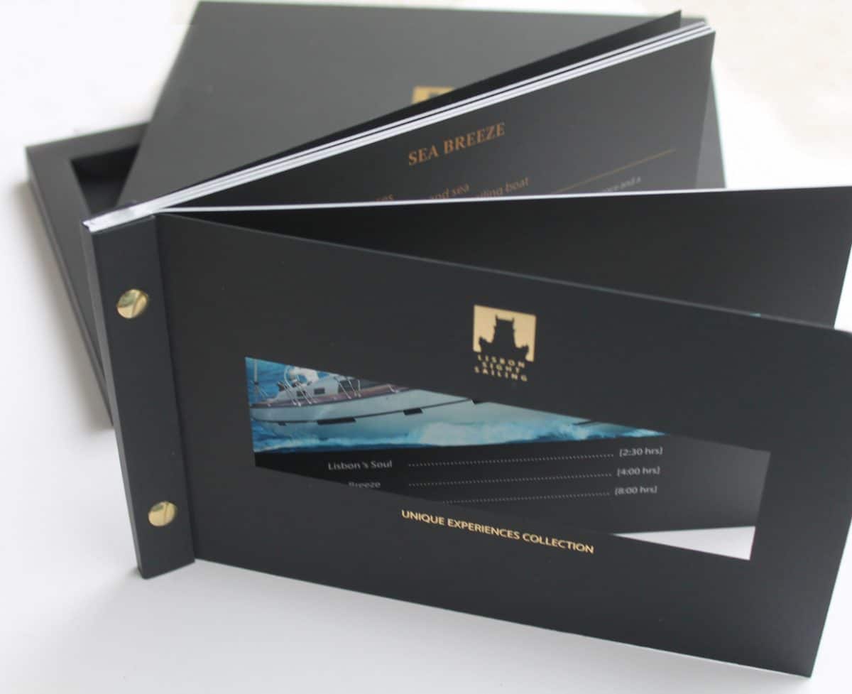 Composta por uma elegante e tátil brochura envolta no respetivo estojo, a peça também ela permite descobrir “o outro lado de Lisboa”, à semelhança do que acontece nas experiências oferecidas pela empresa. Para ajudar na descoberta, a escolha do papel recaiu sobre a nossa gama ISPIRA, de toque aveludado e ideal para uma impressão perfeita, mais especificamente os papéis ISPIRA Mistero 360gr para o estojo e ISPIRA Purezza 250gr para a brochura.
