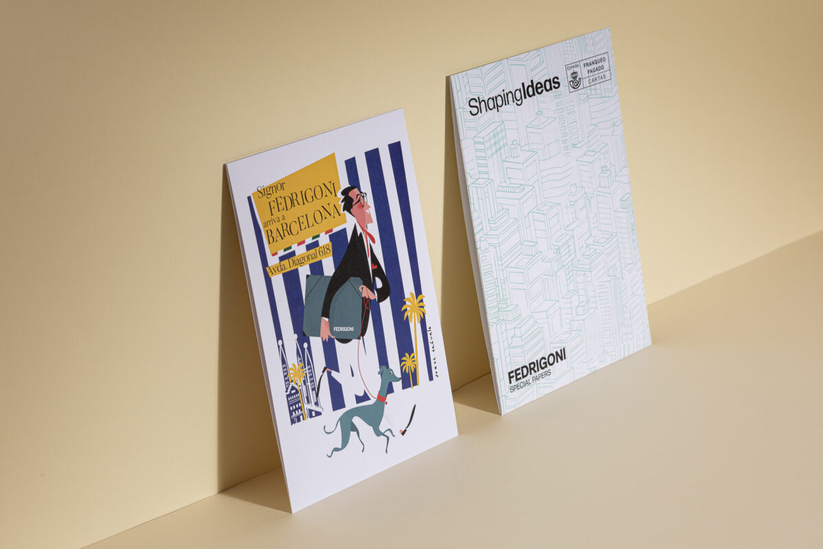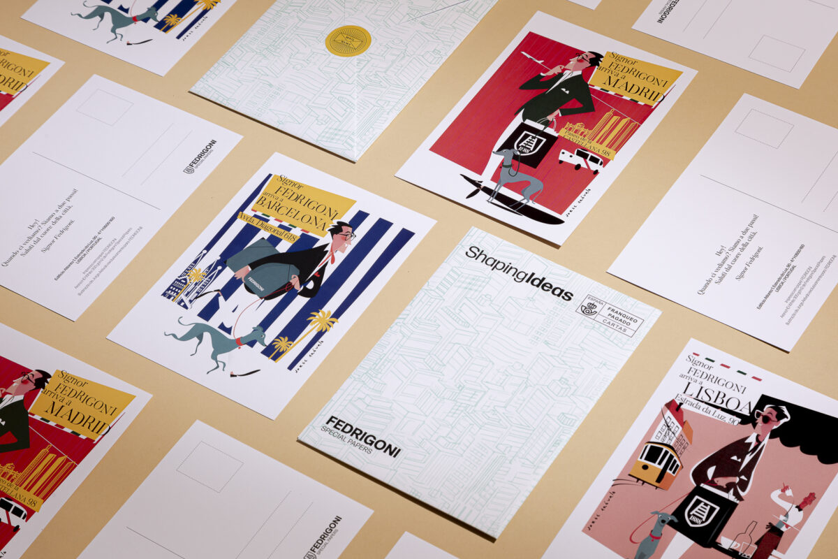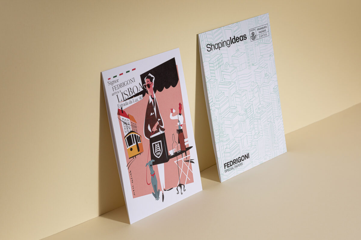 Os postais não são apenas uma peça de arte, são também um tributo ao nosso novo embaixador, Il Signor Fedrigoni, recém-chegado de Itália e pronto para transformar qualquer ideia num projeto espetacular. Estas peças exclusivas foram criadas para lhe recordar que estamos aqui, no coração da cidade, sempre prontos para transformar as suas ideias em realidade.